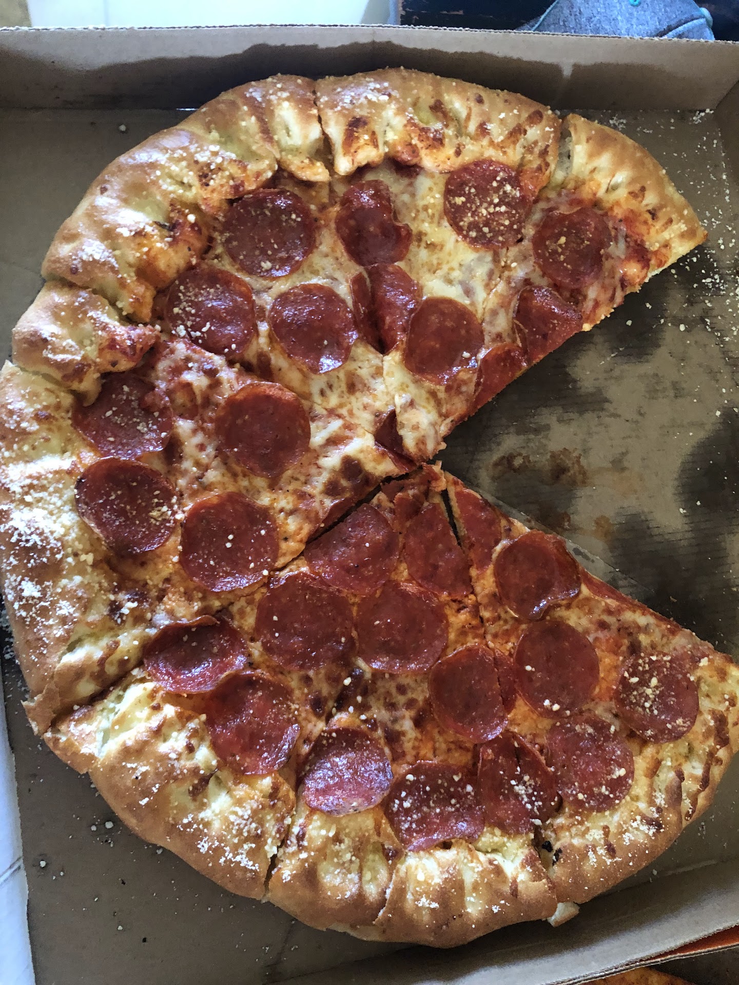 Read moreI really see no reason why this shouldn’t be 5 stars! At first impression, the place looked a little rundown. Young kids were working but they were actually really polite and were cleaning in the little down time I saw them have! Then the place got swarmed! It was packed! So many people in a tiny building. They handled it well! It took a little longer then expected but everything was so good and fresh! I got the BBQ bacon pizza, a stuffed crust pepperoni & the stuffed crazy bread! I didn’t take pics of the crazy bread and they were kinda sad looking but tasted fantastic! I’m not crazy about the marinara but I always get other sauces anyways.the BBQ bacon was mine & my husbands fav, they should consider keeping it on the menu.