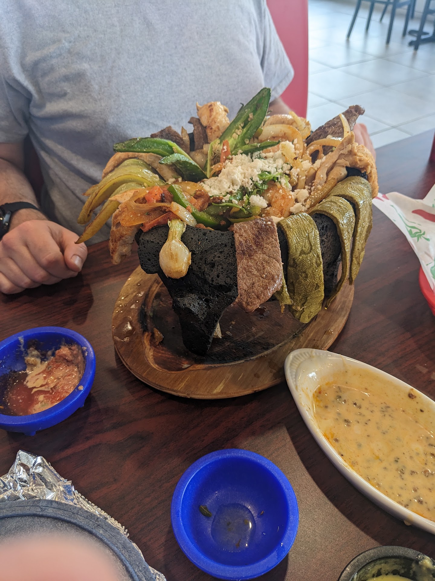 My partner had a molcajete which had the nicest presentation I've ever seen any restaurant we've gone to. The strips of meat and cactus and peppers were all cut in such a way that they draped over the bowl and inside was even more deliciousness. The meat was tender, the peppers and the Napoli's had a good flavor. Overall it too was a really good dish.