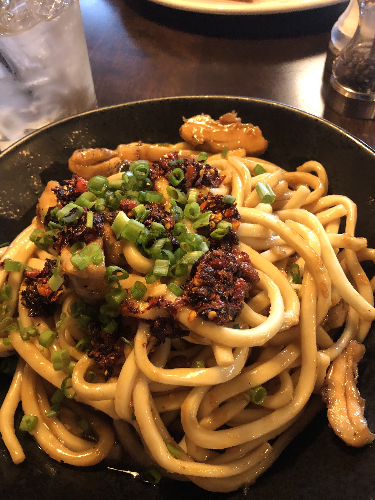 We wanted something different to eat. I love LoLo but again wanted to try something different. Weâre greeted quickly but it took like 10 minutes for our drinks. I ordered water with ice. Finally after some rubber necking trying to get someoneâs attention, we ordered..it was not busy btw. On the suggestion of waitress I ordered the garlic noodles. I asked if it was well coated, saucy noodles. She said yes. I ordered with chicken and hubby ordered walleye fish and chips. Food came out in good time. My hubbyâs fries looked like at the end of the bag..tiny pieces. He didnât care for coleslaw..dry. He thought the walleye was ok. My udon noodles were really chewy. Iâve not had them that chewy before. A personally I think it needed another minute or two to cook? I know theyâre supposed to be chewy but it seemed more dense and chewier than I expected âŚwhich whatever. The disappointment was the amount of chili crisp oil. It was ALOT. My noodles were floating. And for extra $7 or whatever for chicken, not much chicken. Waitress said it was saucy, I was expecting some hoisin or something other then just oil. I ate like 4 bites. Couldnât eat it. I did tell waitress and she offered to have something else made but it was at the end of our meal. I wasnât going to wait for a meal then make my hubby sit for another half hour lol. She was very nice. Itâs just not our jam. Iâll...