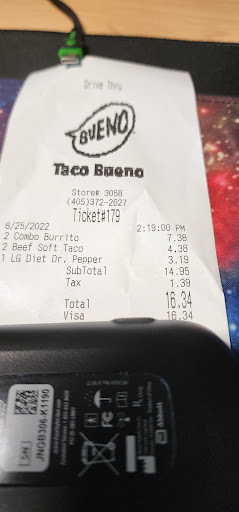 Read moreWe received coupons in the mail from Taco Bueno and thought we would use them. It was 2pm, and we waited nearly 20 minutes in drive thru lane to get to the order mic. I ordered the party box and was moving on into the rest of our order when the TB guy interrupted me to tell me they didn't have enough food for the party box I ordered (6 bean burritos and 6 tacos with a couple sides)!! I was surprised, and asked him if they had food for all the people behind and in front of me, but not me? Cuz I ordered 6 tacos and 6 burritos, and they don't have enough food to fix my order?? What a crock of burnt beans, man! I had to wait an additional 30 minutes to get out of their drive thru and go where I should have gone to start with: DEL TACO! No matter how big or small my order is, Del Taco can fill it! Taco Bueno cant!!! I think you can guess you lost my monies, present and future. I STILL can't believe it happened, and it did on Saturday, Jan. 29th at 2pm. It was a guy who said my order of 6 burritos and 6 tacos was too much food for them to make. How are you all still...