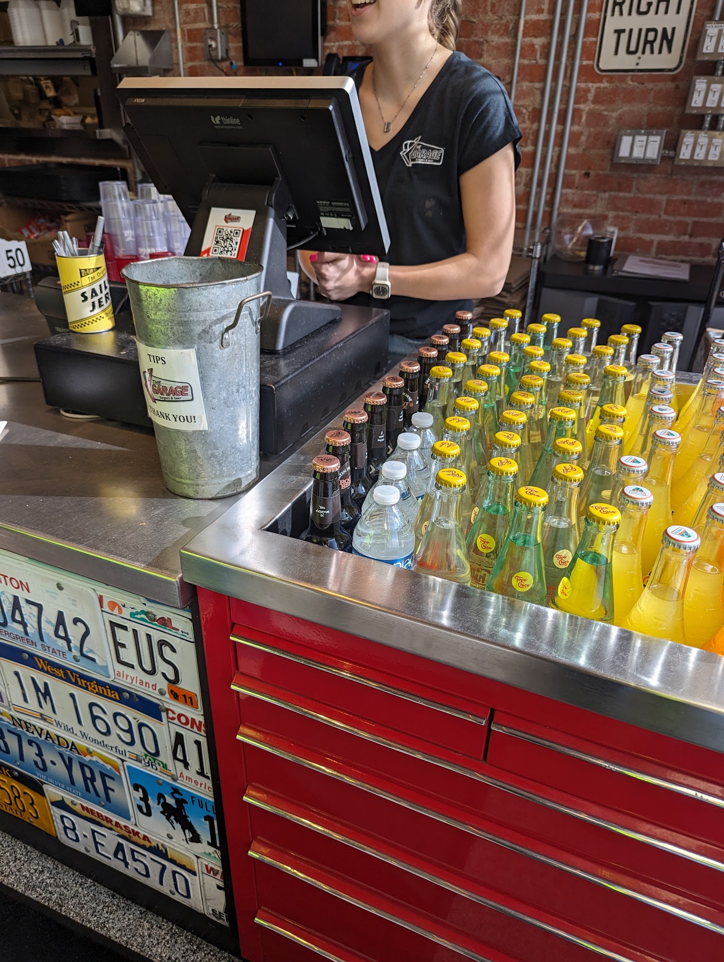 Read moreI have never had anything negative to say about this place till now. I arive and there's like 5 people behind the counter.. think nothing of it.. order as usual. 2 ladies took my order.. guess it takes more then one person to take an order.. got 23.00 for 2 burgers, 2 fries and one soda. I hate how they ask for a tip and dont even service you first.. like why pay a tip before you even get service? I dont get it.. that's not the worst part though.. I order 2 drinks from the bar. 6 bucks a drink. Got my receipt.. both drink 14.75 plus a 1.99 tax. O16 bucks and some change.. was gonna leave a 5.00 tip.. would have cost me 23.00 for 2 freaking deinks.. they came over and gave me this. Stuff bout taxes but I've ordered the exact same drinks at the exact same place and have never been charged that much.. I do feel ripped off.. I feel like they changed the price on the drinks for me to get more money out of me.. that's what it felt like. Wish I didnt even tip them the 2.00 I did. I will make a point to just stay away from this money grabbing...