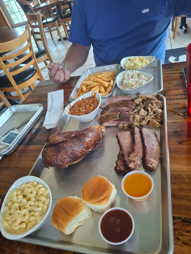 Ā Ā Ā Read moreHeard lots of great things but being that it is the only BBQ place around I can see why people say it is "good". The meat was cooked PERFECTLY but lacking flavor. The Mac n cheese is COMPLETELY flavorless and dry, the noodles were overcooked as well. The rolls are obviously kings Hawaiian sweet rolls. The BBQ sauce is in sweet baby ray jugs in plain sight when you order and is clearly not house made. I dont care but don't advertise that it is house made. Claimed the sampler platter is enough for 2 people when it is only 16 Oz of meat with soggy yellow noodles, pre-made sauce and rolls for over 40 dollars. Not upset, had to try it. Will not be back unless it's the only thing open and I'm drunk but they're closed half of the week as well. I'll make my own brisket for half the price of a one person meal. Congratulations on the new business but yall cam definitely step it up woth very few...