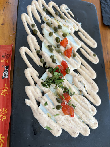 Upon reviewing photos of our meal later, I noticed that our portions were considerably smaller than those shared by other guests on Yelp. The two scallops were thinly sliced, and the calamari portion was quite small, mostly accompanied by kalamata mayo . The main dish also did not provide enough for three people, (6-8oz dry fish) and to our surprise, we were charged $44, which does not reflect the quality or quantity expected at this level of dining.