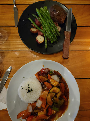 Read moreThe 3 star is an average of 5 stars for the absolute amazing food and a 0 star for service including the loud awful patio singer who maybe if he wasn't so loud, his off-key-ness wouldn't have been so bad. There were 5 of us and we started on the patio for a hot minute but couldn't take the loud off-key singer so we bailed and moved inside. It wasn't a busy evening as there were was 1 table of 2ppl outside (hint - get rid of the singer and play nice music!) and maybe 4 tables of ppl inside including us. Our waiter tried to memorize our order which did NOT work. Only 4 of the 5 dinners were brought out and zero mention or apologies for the lack of 1 person's dinner. After at least 15 minutes, the hostess came over inquiring after the missing dinner which was not brought out until the 4 of us had finished our plates. Ugh. Good we didn't wait as our food would have been cold. And then we had tickets to a show so we didn't have time for dessert - boo hoo. Anyways, so we had to get out of there and our waiter insisted he pay for and bring a dessert and demanded we wait which was just stressful - read the table dude! WE HAD TO GO! The dessert was nothing any of us would have chose so everyone had a taste and we had to leave. Yes, something should have been done b/c of the problem, but giving us something no one wanted and asking us to stay when we said we had to go was even more rude and wasteful. And he never did apologize, just smiled and pretended he was doing us a huge favor 'sharing' his favorite dessert. What an awful server - no one is impressed by staff that memorizes orders and its obviously worse when you don't have what it takes. We'll go here again b/c they have amazing quality food but if that server shows up at our table, we'll request someone else or eat at the bar if we have to. We're not dealing with...