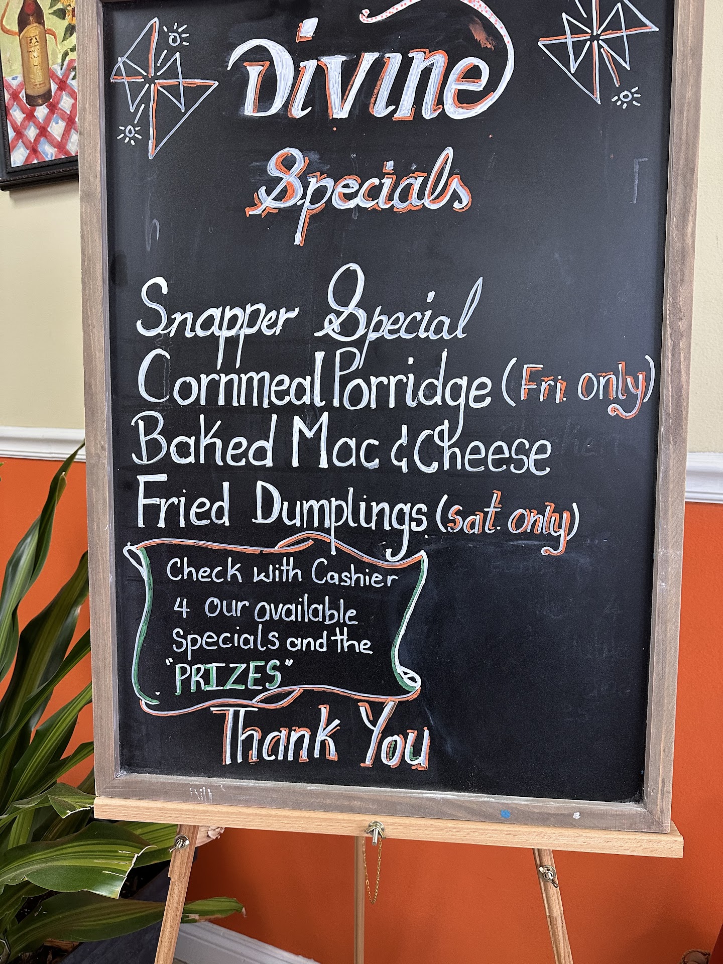 Came in to try their Jamaican Patty. They have a variety Beef, Curry, Veggie & Spinach. I got a Beef & a Curry patty & thoroughly enjoyed both patties. Curry was delicious as was the beef patty which had just the right amount of heat for me. Crusts were flaky, crisp to the bite & filled with yummy flavorful filling. 10/10 recommend. They also have a variety of drinks & I finally got a Pineapple Guava drink-if you know, you know!! 2 pattys & my drink came up just under $10.00 & Worth It! (I thought Justin may have missed charging me something because I havenât had a meal for less than $10 in a whilesđ) Will is the Chef who makes it Fresh & has Soups, Sandwiches, Salads, Wings & more! Justin l, who oh so polite & helpful, recommends the Chicken tender sandwich which I will absolutely try. Divine Kitchen offers a Daily $7.99 Special!! THEY HAVE BREAKFAST TOO til 11am. If you live or work close by, Divine Kitchen should be one of your go-to places to eat. If youâre passing through 42/23 you need to STOP @ Divine Kitchen & make your tummy happy w...