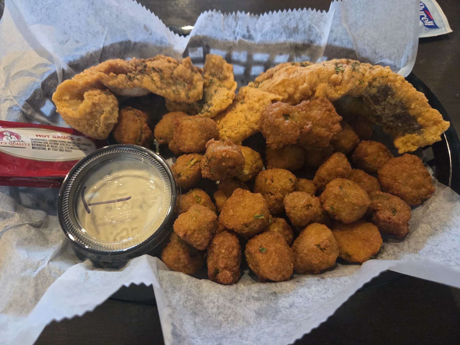 Visited this place for the first time and most likely my last. We chose outdoor seating which was nice. We ordered our drinks Hennessy margarita and the frozen smoke cocktail which were both good but the sweet tea was delicious, best thing I had while there. We both ordered wings but I asked for no seasoned salt on my fries which our waitress Alex confirmed. When the food comes out (my boyfriend received someone else's order) there's seasoned salt on my fries so as I'm telling her, another lady came out and overheard me telling her so she says I can bring you out some without it I said yes please, thank you. Alex then comes back and says she said she didn't put seasoned salt on your fries...we're all looking at my plate where there's clearly.. you guessed it, seasoned salt. Even the waitress said yeah I see it but it's not a lot. That's cool, I said no seasoned salt tho so I don't want a little I don't want any. So I said so does that mean she's not bringing the corrected order? Alex says no ma'am but if you really want me to I can push the issue for you. What??? I have to push the issue to get what I asked for when I ordered? Not to mention she stood in my face and SAID I can just bring you out some without it. If you know you weren't going to why would you lie to me like that. At that point I said you know what never mind I'll just eat the wings. She comes back with the someone's order and shows me the plate and said I can show you the difference with the seasoned salt, and proceeds to show me that the fries were heavily seasoned....I know what seasoned salt is and what it looks like. I make sure to say NO SEASONED SALT everywhere I go when I order fries because it's like the norm for them to add it. Never had an issue like this. If someone messes it up, never a big deal they bring me fries without it🤷🏾♀️. The wings are a good size, flavor was just ok. I had dry lemon pepper. I only ate 3 of them because I kept catching myself reaching for fries and I had a bad taste in my mouth about the whole encounter. They have a thing they do where the train goes by and you can get a shot for $5. A lady sitting near us told us about it so we asked. The shot glass is even smaller than a medicine cup. It's SMALL y'all and they didn't have 2 of the liquors I asked for so I settled for a suggestion from the waitress. I left those fries right there and we were still charged for the wing combo. We didn't fuss we just paid and left and knew that we probably won't be visiting there again, not because of the mistake with the fries but the lack of customer service after the mistake was made. We were even ok with receiving the wrong order, being out of food and liquor that was on the menu but not available, we were still willing to give them another try another day but...
