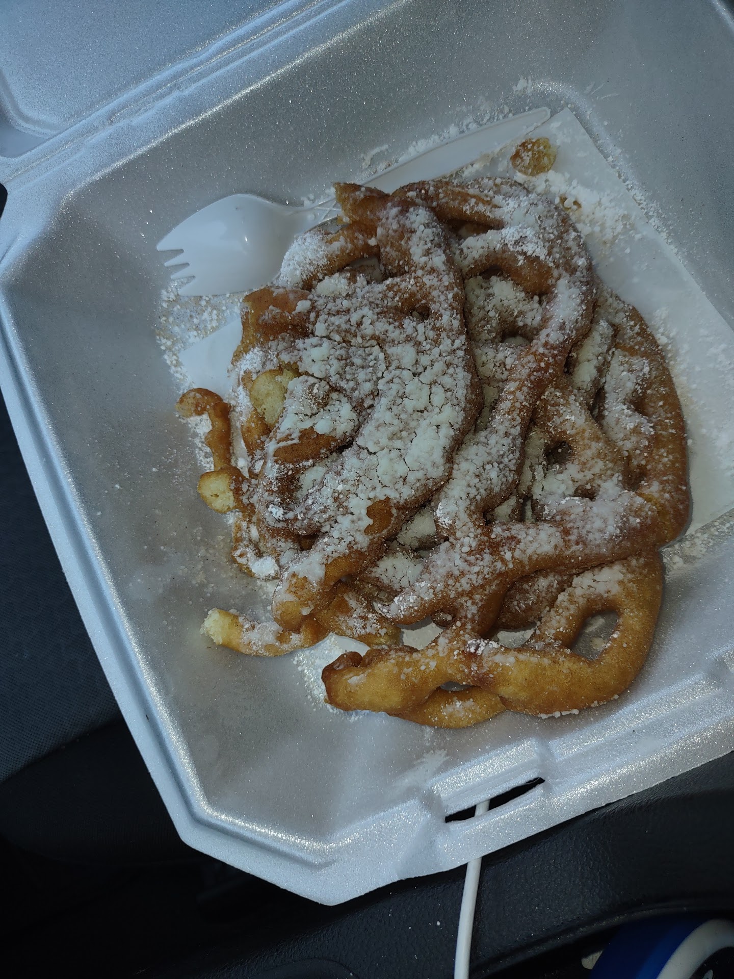 Read moreI was so disappointed seeing as this place almost has 5 stars. Walked in, greeted the staff member, and nothing! So I spoke again, and she half way said hi and didn't even look up in acknowledgment. At this point, I should have left but I reeeeeeeeally had a taste for a funnel cake. I ordered two classics. They were definitely reheated and NOT cooked fresh. Both cakes were soggy at some parts and chewy. And the powder on top seemed caked on like it was wet and sprinkled with fresh powder. I ate a few bites around the edge and threw it away. Wasted money. Some of the recent reviews explain this as well. I would NOT recommend this place. Maybe staff members from 6 months to a year ago have changed because those reviews were great. Anything recent is low reviews,we definitely didn't experience almost 5 star...