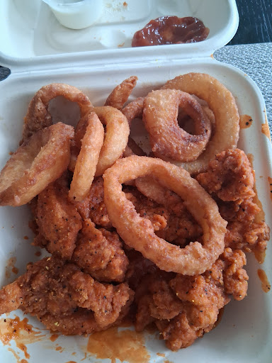 My husband and I ate at the Ruchda Wings location in Stockbridge yesterday and decided to order chicken wings and french fries. Later on, I noticed a terrible nauseated and painful feeling in my stomach and I began to desk out in sweats so immediately told my husband that I wasn't feeling too well and that we needed to head home. Now of course, I had never thought that it would be Ruchda simply because my husband and I are there years ago and had no problem. Well once we got home, I immediate ran to the bathroom and within in seconds, I began to feel painful hives popping up all over my face. I looked in the mirror and was horrified then came the itching. I am deathly allergic to seafood so when I let my husband know and see what was happening, he was in total shock. I was having an allergic reaction. Now Ruchda was the only thing that we had eaten yesterday so I knew that this meant that they had gotten careless and cooked their seafood in the same oil that they had done our wings. My husband immediately called to request a manager and when the manager got on the phone, he stated that they had not sold "barely" any fish that day and tried to cover the entire incident instead of taking responsibility for something that could have been life threatening. I am still sitting here at 7:30am the next morning with a swollen face after taking benadryl (which helped when I first had my reaction) and cannot believe that this has happened. My husband and I plan to reach corporate and if nothing is done to rectify this issue then we are filing suit. I have two children who need me and I should not have to be concerned with my life as a long time customer of Ruchda who is spending mine and my husband's hard earned money to support their restaurant.