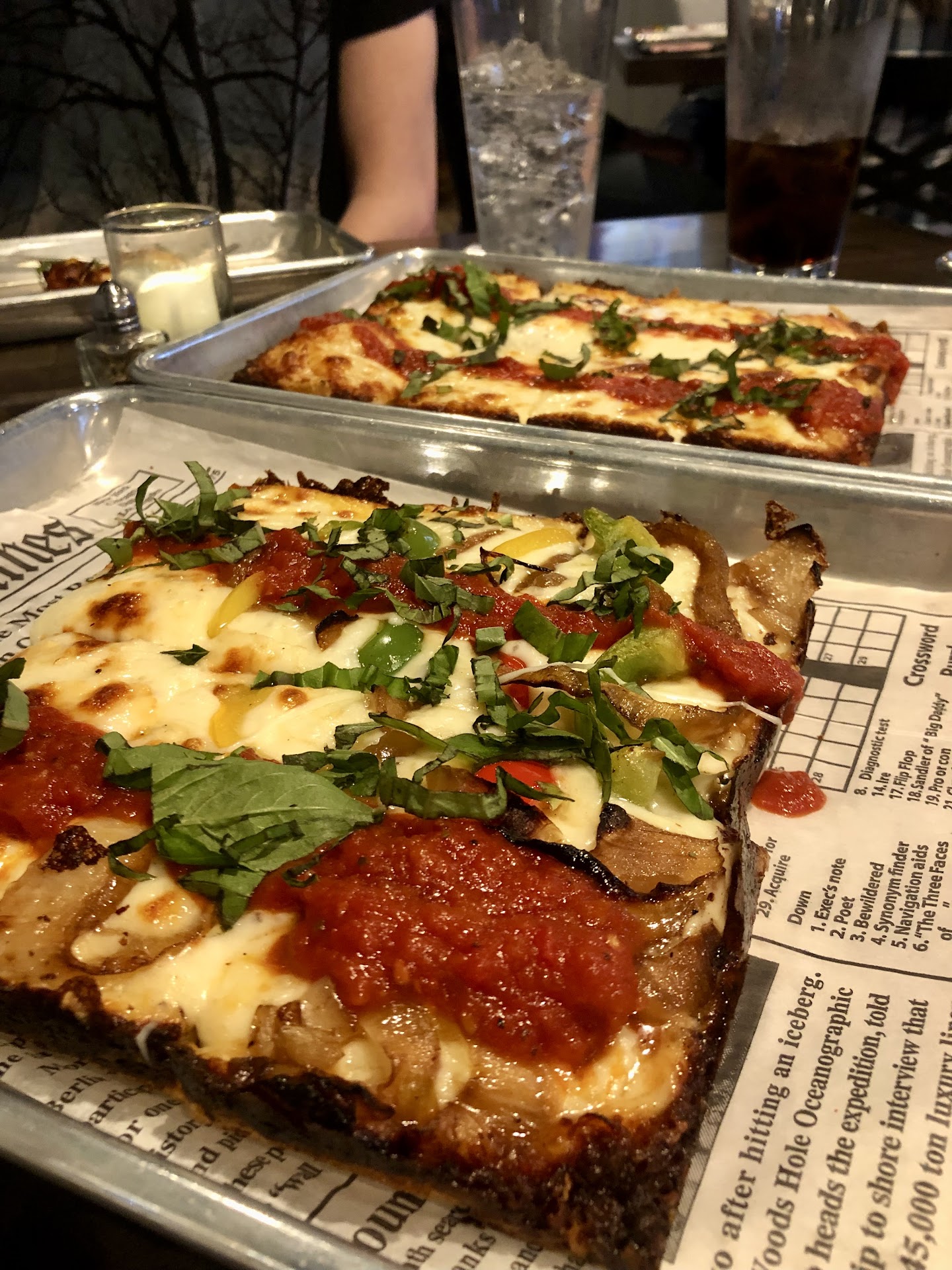 Ā Ā Ā Read moreCame for dinner with family (group of 4) on a Tuesday night around 7pm, and we were able to get seated immediately. The staff was very friendly and courteous. I wasnāt planning on having a drink with the meal, but I noticed they had a chocolate peanut butter old fashioned as the monthly drink special and had to try it. It was quite good! We got three pizzas and a cheesesteak to share, which was more than enough for four people. The pizza here is Detroit Style, and it is executed very well. Itās got a nice thick dough with a nice chew to it but also some pillowy lightness to it. The cheese is loaded on all the way to the edge of the pan, giving you the nice caramelized crispy edges. I mostly had the 700 Main Pie, which has sausage and peppers in addition to the cheese and sauce. I thought it was a really good combo - only complaint is that the menu claimed it had āroasted peppersā, but the peppers didnāt really seem very roasted. The Goat Pie was also very tasty, with the goat cheese being the star of that pizza and being well complimented by the apples and caramelized onions. Wouldāve loved to see just a few more caramelized onions on top though. I also had a bit of the cheesesteak, which was delicious. The cheese melted beautifully with the beef and onions for a perfect bite, and the fries that came with it were pretty good too. We ended up taking a lot of the pizza home, and Iām looking forward to having it for...