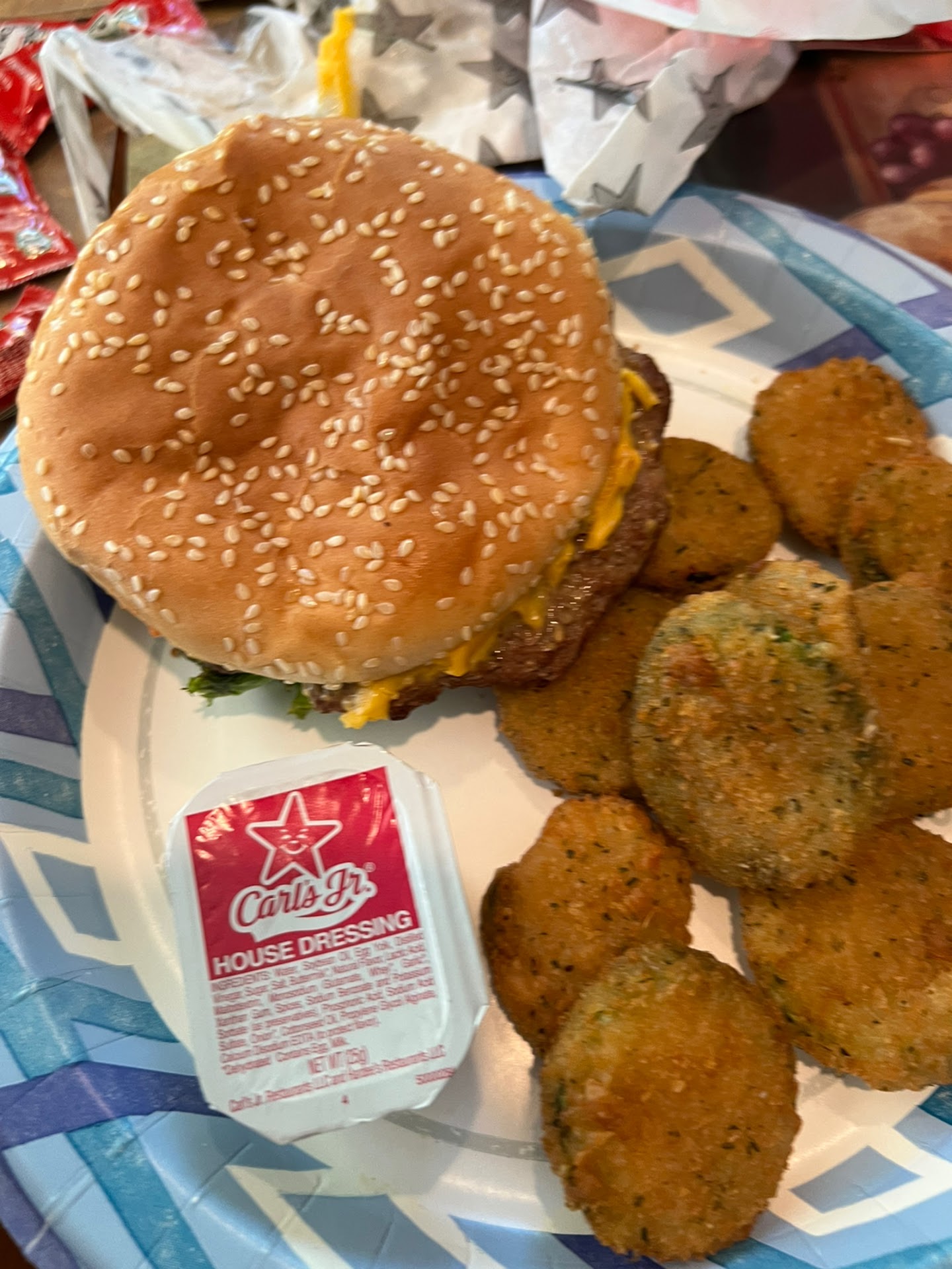 My first time at this Carl's Jr. was in the 1980s. The second time at this location was in August 2022. We went in to order takeout, but the focus of the server was to accommodate all the drive-thru orders first even though we were there before the second and third cars. The fried zucchini was excellent. The burgers were okay. BK and I-and-O have better tasting burgers.