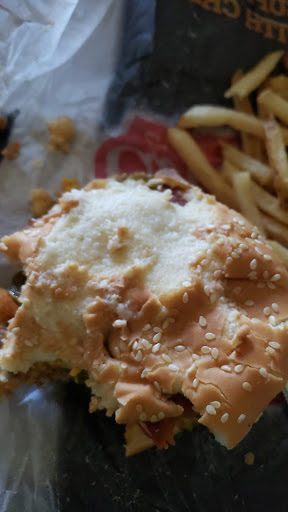 Read moreI went before class to pick up some food through the drive thru and I got to class before opening the bag. When I bit into the burger I felt like something was ripping in my mouth I spit it out and see pieces of HAIR. At that point I was completely disgusted, I remove the top bun then bacon and see a bunch of semi long pieces of hair. I throw it in the bag and immediately call the manager. I go back, she refunds me and rushes me out of the restaurant. I leave but I let corporate know because she didnt seem surprised or grossed out at all. A couple days later she calls me to apologize but she sounds super upset and rude. Calling me the customer that complained to corporate. Then offers me a free meal as if I would ever go back. I said no thank you and she says ok fine....If you must eat on the go try anywhere else then Carl's jr on...