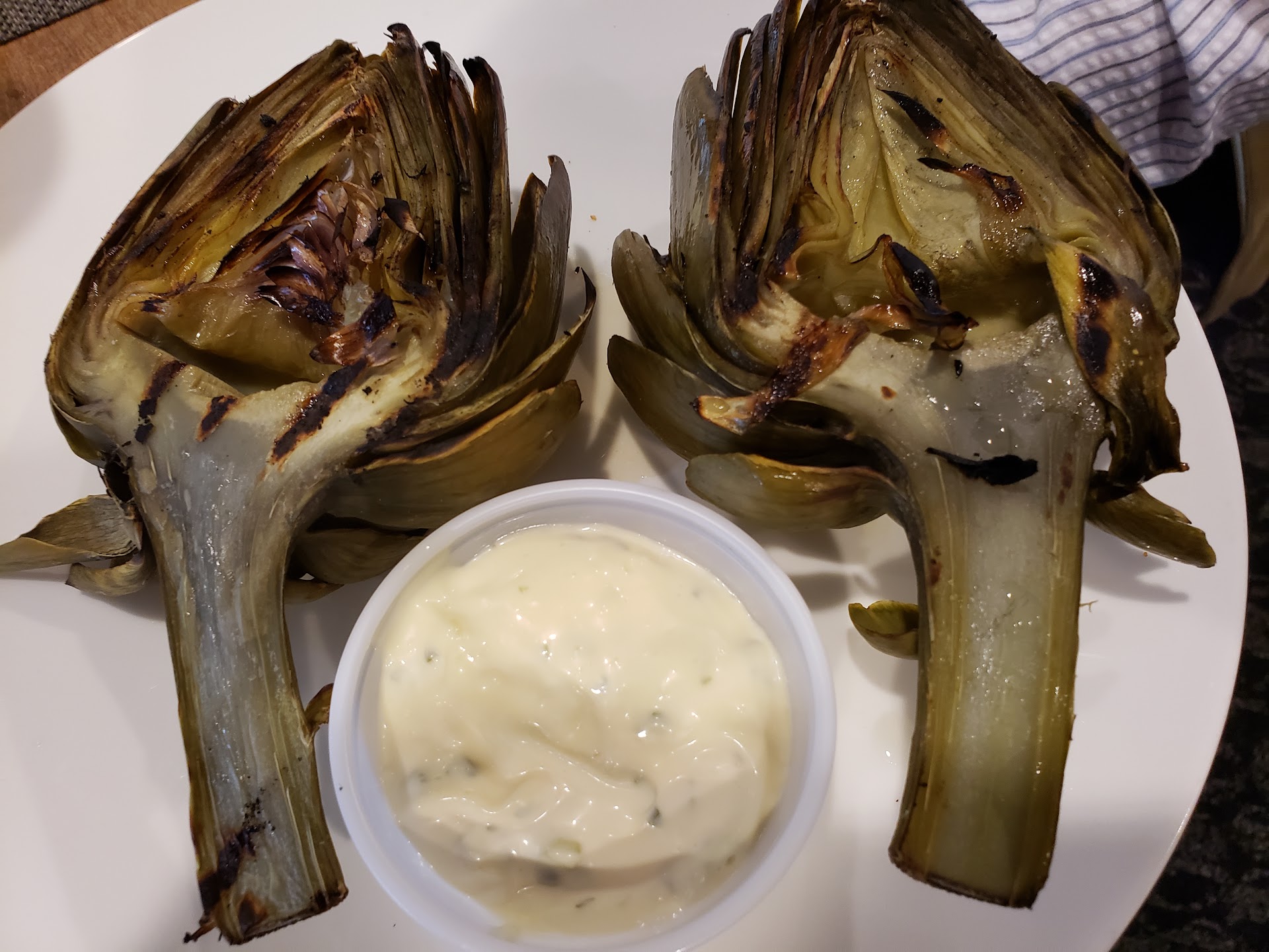 It was a Friday during Lent, so I ordered the grilled salmon with the sweet chili sauce on the side, along with the clam chowder. As an appetizer, we ordered the grilled artichoke to start. The artichoke was a good size and prepared well. It was tender and you could taste the smokiness of the grill. Absolutley delicious! The clam chowder was like wallpaper paste. It was thick and gloppy; not very good. The salmon was nothing spectacular. It was a tail portion, grilled all the way through (I prefer mine just slightly underdone), served over a bed of rice pilaf with broccolini. Overall, the meal was good, but a bit overpriced for what we got. If they ever do the prime rib buffet again, I would give them...