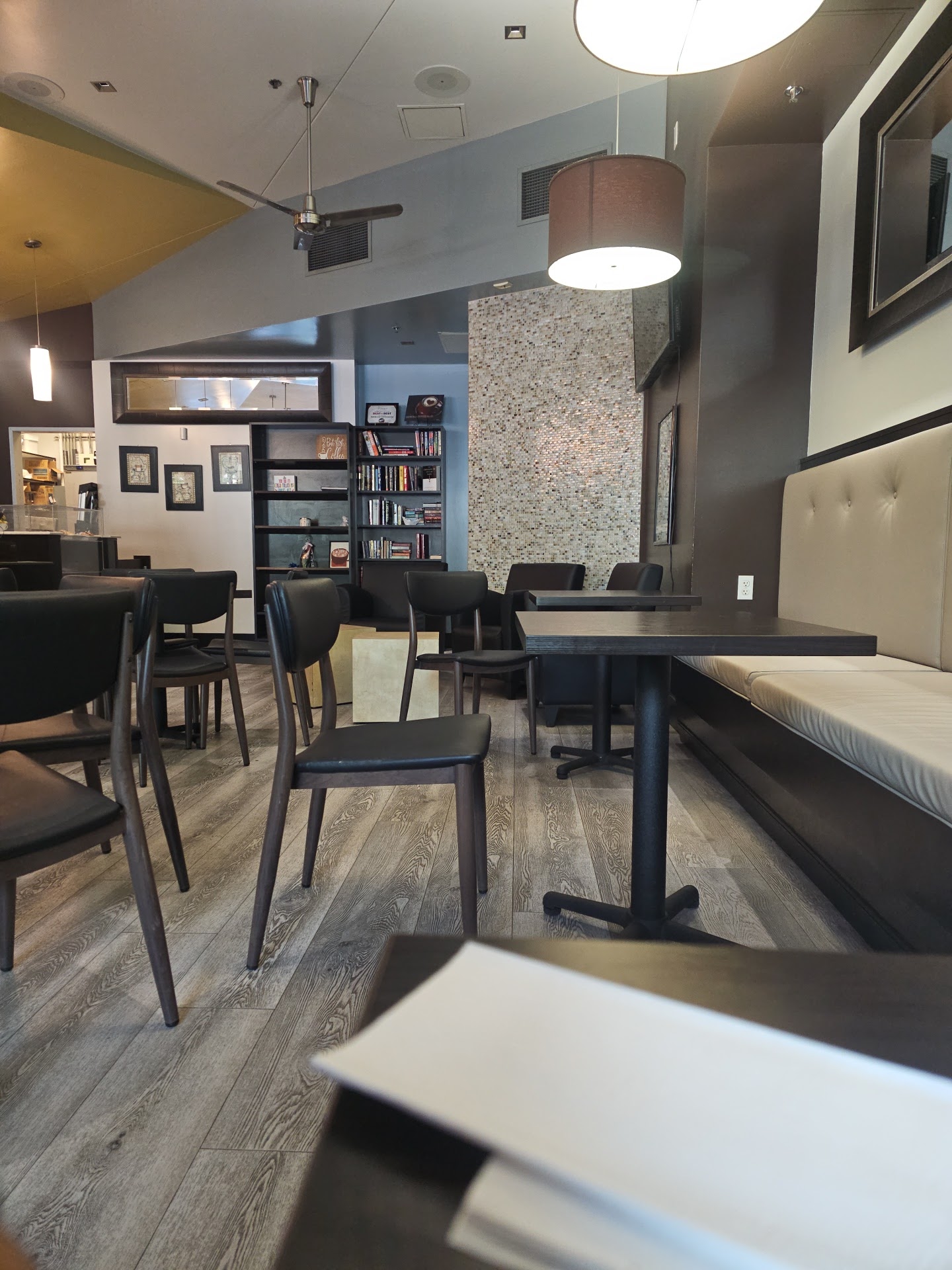 ย ย ย Read moreReviewers said the atmosphere was good..but we had a different scenario.. baristas talked loud like they were in a Bar.. and the music didn't jive with the settings.. hard rock was a bit loud that people had to talk over the music.. yes they have books ๐ on the wall.. so maybe when it's a different group of baristas. Yup... one of the ladies left and the music came down to how a coffee shop should be. I will leave 2 stars on the atmosphere.. and try...