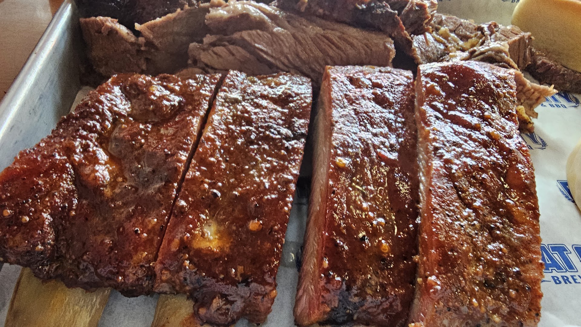 My favorite BBQ place in town. Casual atmosphere and no frills. Closed on Mondays. I usually order the full rack. I can't eat it in one session but it lasts me up to 3 days or 3 meals. I prefer the smoky and spicy taste when it comes to my BBQ flavor so this place delivers on flavor. The tri tip sandwiches are just amazing. The sides they offer include potato salad, mac n cheese, green garden salad, crispy twisted shape fries, cole slaw, chili, and other options I forget. Sides are all homemade too. The 3 meat plate is perfect if you can't decide on one meat. The BBQ chicken is perfectly cooked, but the breast part can get a little dry if you eat it a day later and microwave it. The hot links are good too, just enough spice and savory. The trip tip is soft and buttery and cooked to perfection a med rare. They also offer a huge selection of craft beers on tap and have a small bar counter and area to sit if you don't feel like sitting in the dining area.