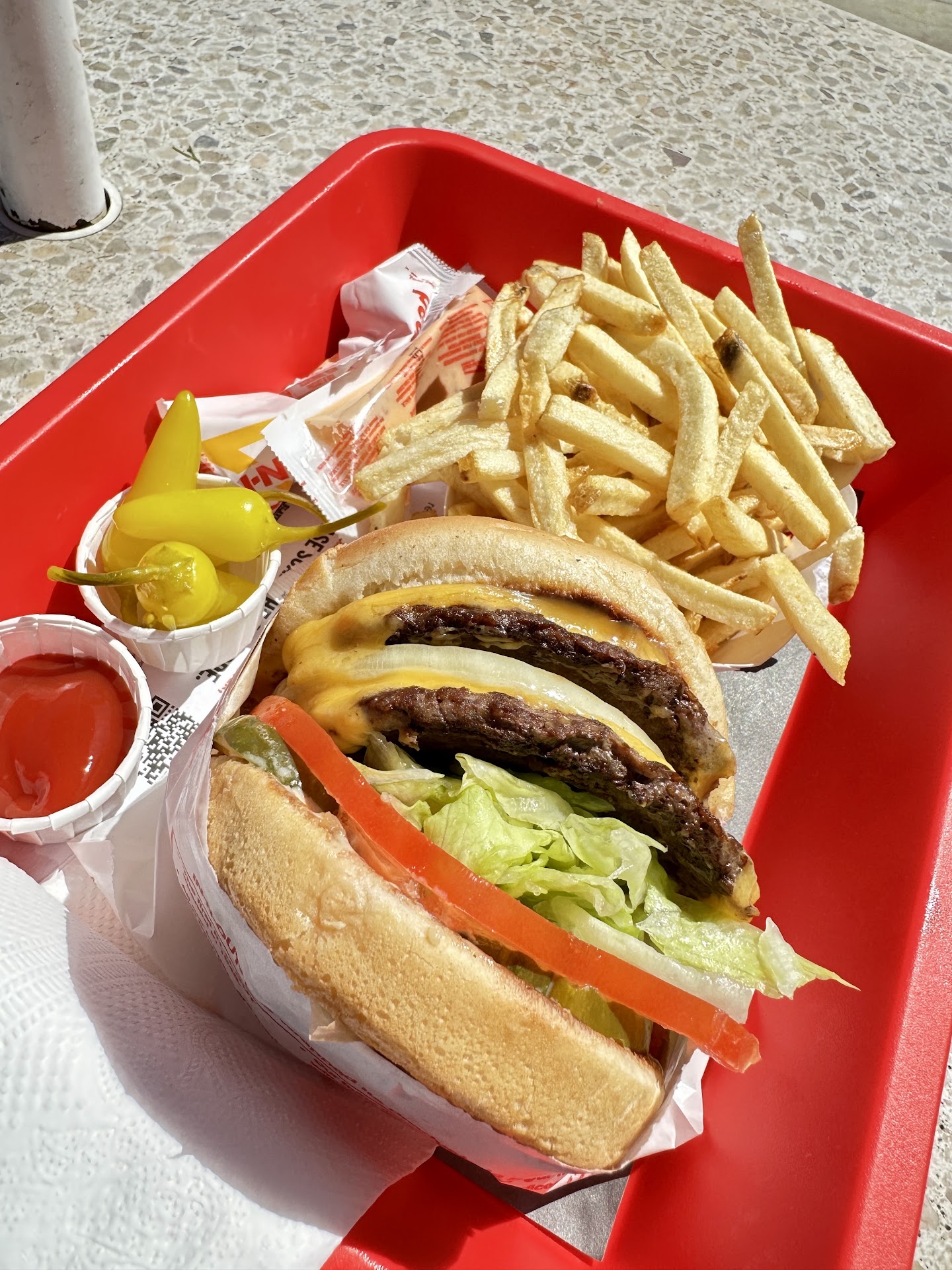 Update: Monday, February 5, 2024, 7 PM Simple, yet good! Nothing fancy here. Just good burgers and fries… order the fries well done! Consistency is what makes it great. It’s the same every time. Pretty much you have it your way. There’s so many different secret menu hacks that keeps me coming back. Tonight I had a 3 x 3 animal style, grilled whole onion wrapped Flying Dutchman and well done fries! I enjoyed every bite. Unfortunately the power went out and some people did not get their order since they couldn’t cook. But they had a back up generator for basic lights and computers. In-N-Out is definitely in institution and one of a kind. I’m glad they never strayed from their basic core values! I am a repeat customer!! ————————— Update: Friday, December 2, 2022 9 PM.