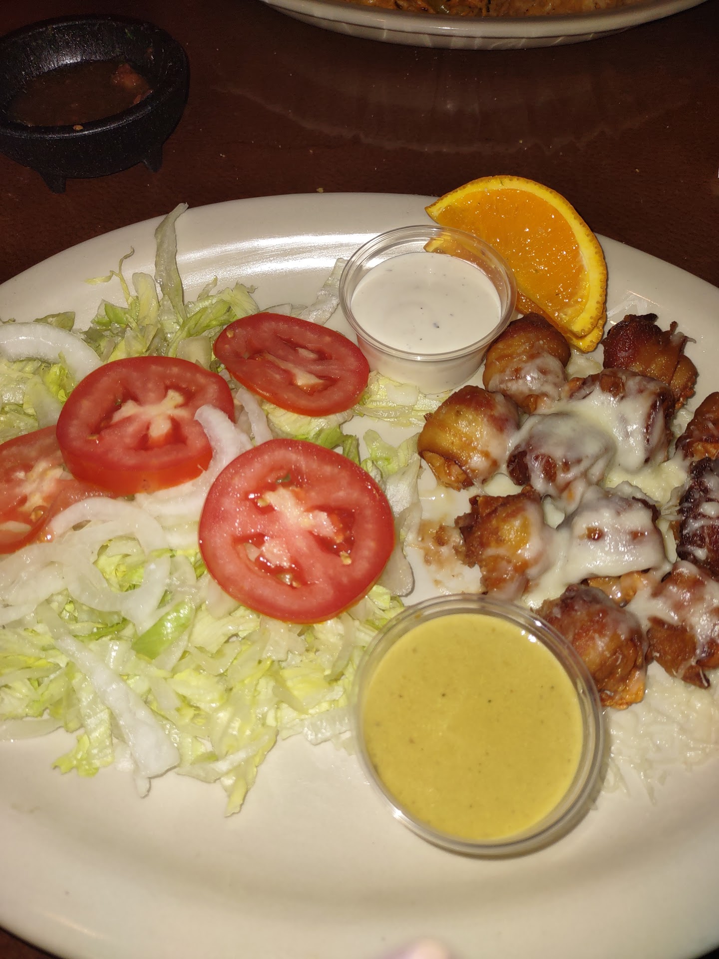 Read moreI don't even know where to start, I ordered the bacon wrapped shrimp it comes with beans ,rice & a salad 17.99. Unfortunately I don't eat beans & rice so I asked for a salad & asked if there would be a price change. The waiter assured me that the price would not be the same. I was so excited because I don't eat out much but when I got my plate as you can see from the picture I was not pleased. Not only were the shrimp like popcorn shrimp ,tiny bite size, but there was absolutely no love in my salad. It was literally lettuce & tomato. I was ready to give back my plate & say absolutely not, but I'm not a Karen so I didn't complain, I couldn't if I wanted to cause he never came back to check on us. I waited a half hour for my tortillas & had to ask a different waiter if she could bring my tortillas. When the receipt came I was charged the full 17.99 for the meal & when I asked the waiter why I was charged the full price when he had already told me that the price wouldn't be the same he completely denied that he said that in front of me & my husband, & proceeds w/ a whole run down of no discounts on order changes, And when I asked him about the salad why they couldn't put any love into it he said they don't specialize in salads. I mean how hard is it to sprinkle a little cheese & olives into a salad when they use cheese and olives on taco salads come on now you're a restaurant use your imagination. I will not return nor would I recommend anybody to go to this restaurant. Their first priority is not to please their customers obviously....