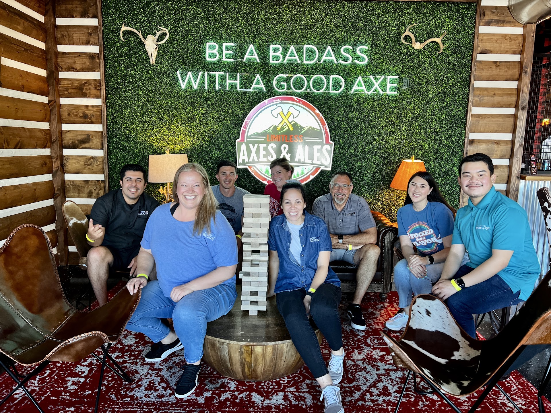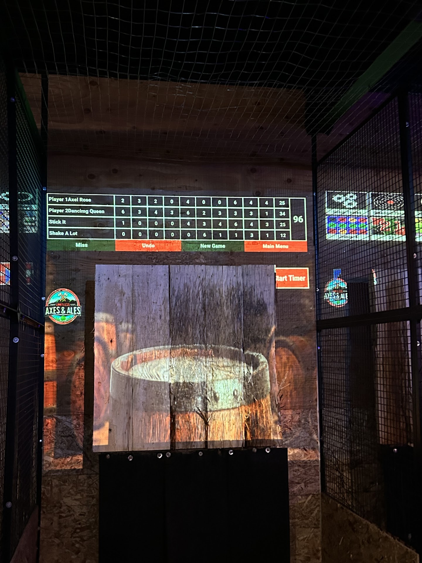 Read moreFun & unique way to spend time on a 1st date, college kids home for winter break, office night out/ team building. Appreciated the Jenga, arcade & "beer" ( water in the solo cups), ping available while we waiting for our axe lanes to become available. Axes is set in a pediatrician -centric shopping area, which is filled w high end to casual restaurants, dessert options, clothing stores & and escape room venue. Atmosphere @ Axes is what you make it- there is no music playing, no juke box, & the Staff was less than friendly & outgoing (@ least on the night we were there). I have no expectations in that regard-- as long as I don't receive bad/rude service for what I'm paying for, I'm happy. How can Axes improve? Music, ping pong, shuffle board, karaoke, coffee (also so staff can perk up & get thru their shift w/out yawning haha), & snacks like soft pretzels, churros, warm peanut in the shell, ding dongs, ya know, something different. Also, keeping score with a chalkboard and chalk is perhaps better until the digital "game scorekeeping" the axe throwing setup is upgraded to keep score so the player doesn't have to use a mouse, find the small box on the "screen" (It's projected on the ax wall ) and enter the score themselves. It's a bit tedious. Also better lighting in the ax alleys would Make the experience much better. Definitely prefer the old-fashioned way of keeping score. Overall, this is a wonderful venue, and a great idea for something different to do when you're in the mood to go out and have some fun! Definitely you...