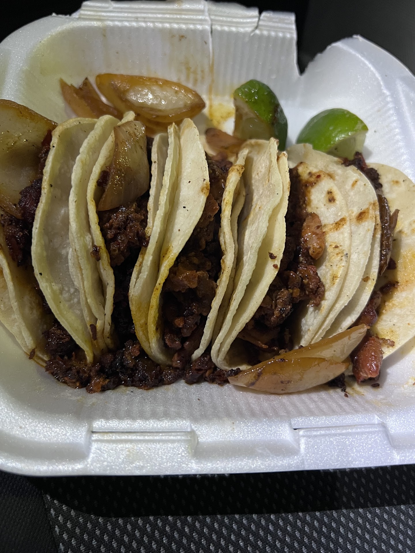 Your average taco truck. I got 5 different tacos, a quesadilla, and a burrito. All different times. The tacos are decent. I had asada, cabeza, langua, and tripa. Burrito would be good if they didnât use day old rice. The quesadilla was pretty good. Only thing that bothers me is every time Iâve gone. Iâve paid with tap and the next day when I check my bank statement the bill comes out $5 more than what is on my receipt. So I believe they may be giving themselves a tip. Even though they never gave me a receipt to sign just a copied receipt. They could be 5 stars but maybe donât steal from...