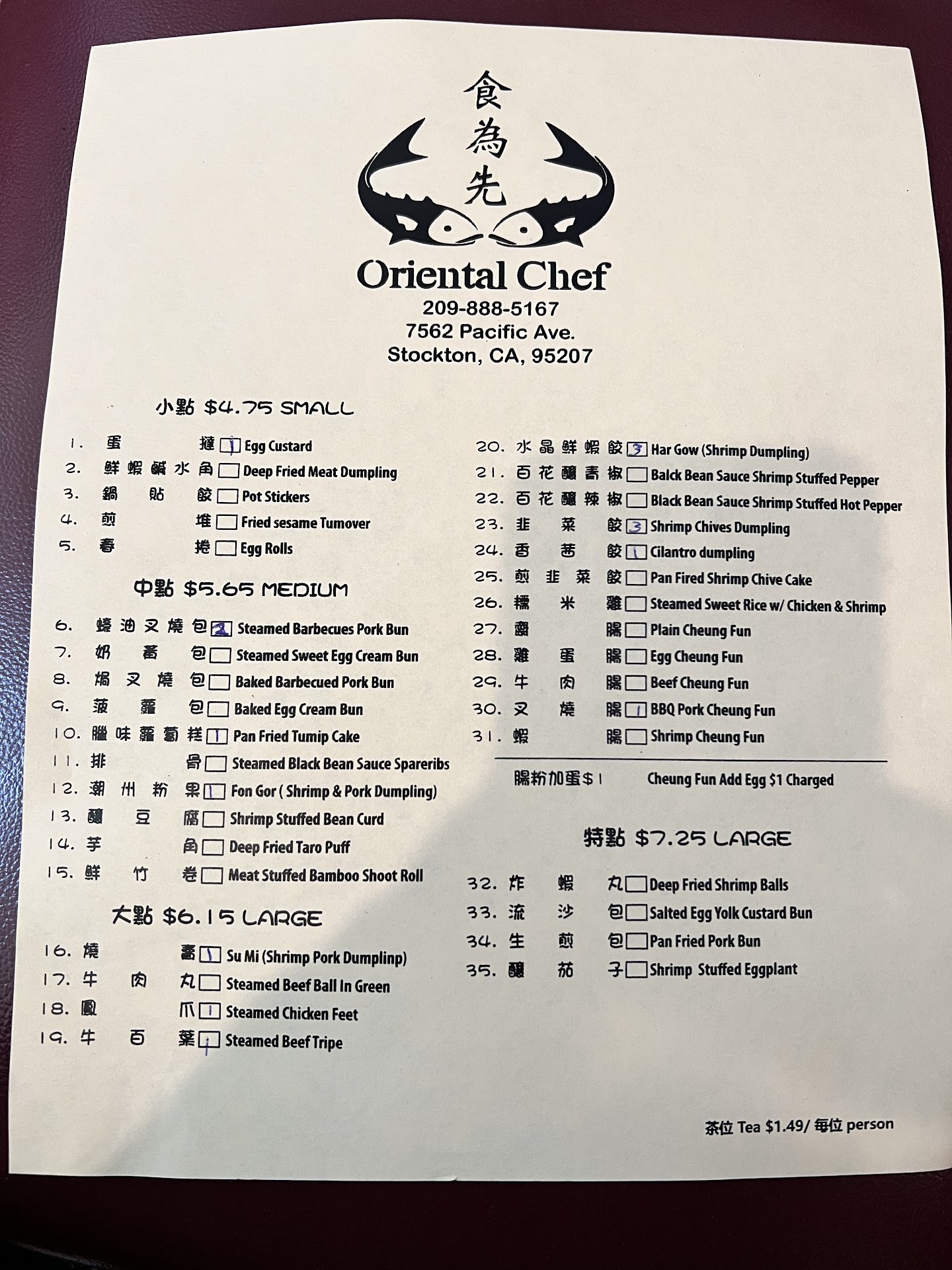 Oriental Chef in Stockton, California is next door to the Hammer Ranch Post Office. Excellent dim sum with roll carts. Good service. The flavoring on the dim sum is more delicate than that of other places I have visited. High ceilings and ample space. Visited here on July 16, 2022.
