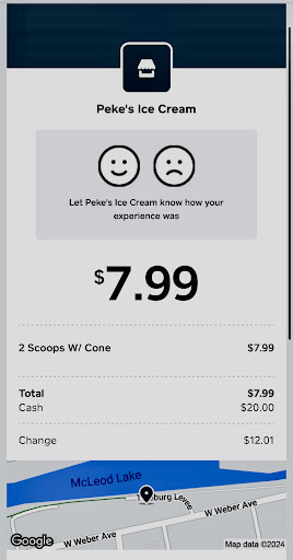 On May 24, 2024 I was enjoying a morning walk along the Downtown Stockton Waterfront. I had some extra time and being that I hadnāt been inside the Waterfront Warehouse in quite some time I decided to go inside to see whatās new. Enjoying my walk inside at the new businesses I found Pekeās Ice Cream Paleteria & Neveria. Ice Cream is my favorite food and I couldnāt resist the temptation to indulge as a treat to myself. āPaleteriaā (Latin) meaning popsicle shop., āNeveriaā (Latin) meaning Ice Cream shop. I ordered 2 scoops on a sugar cone, and Iām glad that I did. The walk-up counter service was refreshingly pleasant as was the tasty and full filling ice cream. Iām glad that I found what I refer to now as one of my new favorite places. While there enjoy the views of the water, other businesses and the marina. Price was comparable. (See 2 photos depicting my sales...