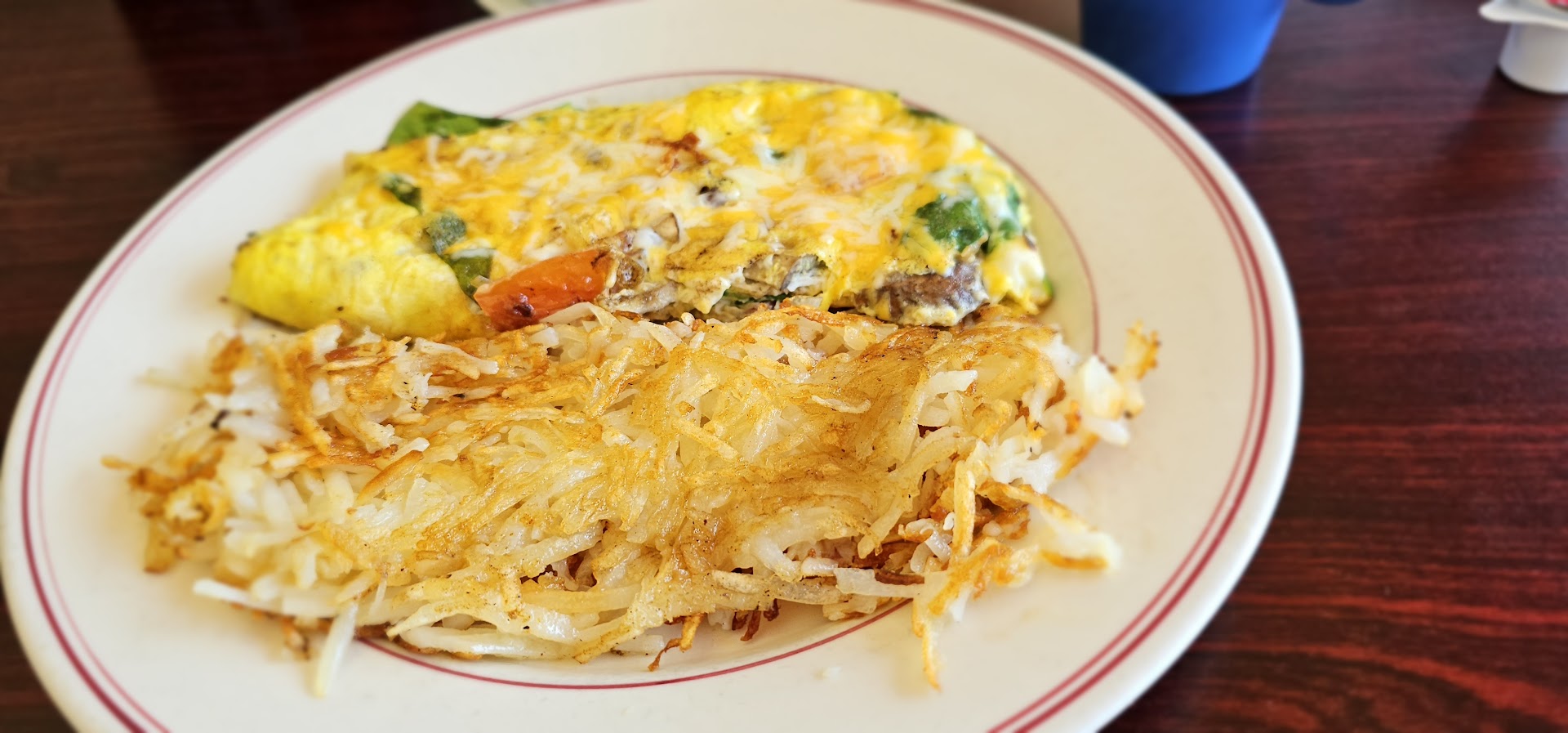 Read moreI want to say such great things about this place because my first experience was so much better. Perhaps the cook was not motivated to cook well for us. My plate was dirty all around the outside and I ate some spoiled veggies in my skillet. The eggs on the sales had grey around the edges. I expected better but this trip was disappointing. I could tell when I was asking questions they were getting upset with me so I apologized to the waitress and left her a great tip although I was not satisfied. When I got home the shrimp I ordered looked delicious but to my dismay tasted like grease and the shrimp were small in the wrap of batter. I’m sorry but Sams did not deliver for me and a...