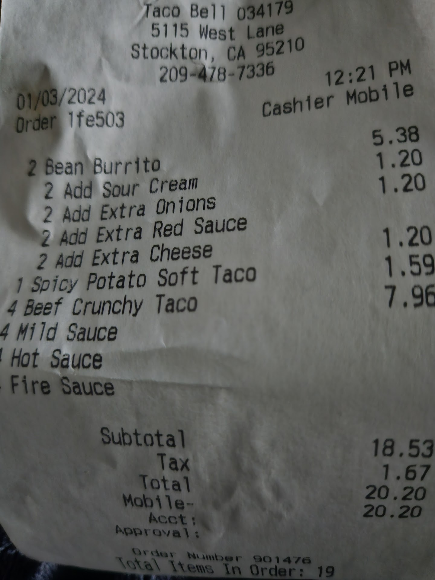 Read moreI came from the drive through a couple minutes ago. I specifically ordered 2 fiesta potatoes & a grilled cheese burrito box but instead of the nachos cheese shell I wanted to replace it with a regular one. Everything on the receipt was exactly as I ordered. The person that was collecting our money in drive thru & giving us our food was rude, and she rushed us! We checked our food and we were missing our 2 fiesta potatoes & my taco was nacho cheese flavored when I asked for regular. Dine in was closed so I couldnât go inside & the drive thru line had 10 cars so I didnât have time to wait otherwise my food wouldâve been cold. This is by far the worse experienced I have had. Paid for food that I didnât even received and on top of that , a rude girl worker that rushed us and gave us attitude because...