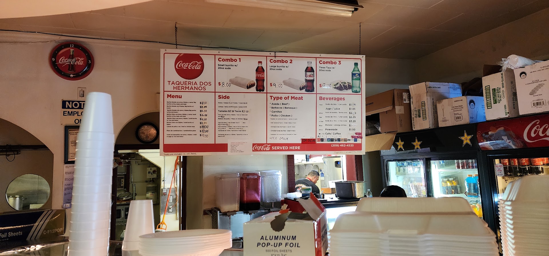 I got a burrito beans, rice, red chili pork with cactus. This guiso really caught my eye, and it didn't disappoint. It has a kick of spice, but I really loved this food. I rarely find places where food tastes homemade good. A different type of good. 10/10 I really recommend it, but it's spicy 👍 Then, a plate of Chile Verde pork with Barbacoa. It's so tasty so flavourful. Comes with rice and refried beans. I will definitely be back. I got lucky to find this hidden gem. Apparently, since 1989, their hours are to suit those who work early mornings. From 3:30 am to 12 noon. That's it. Coffee, cinnamon tea, several drinks from redbulls to sodas. It's very traditional Mexican cuisine (many guisos to chose from). The establishment is not the most renovated or luxurious, but I don't mind as long as my food quality is there, and it was. I Believe they said Menudo on the weekends only. I'm not a fan of menudo, but I have to come back and try some chicken I saw there. Looked so delicious. One thing I noticed is for the coffee if you need creamer, you need to ask for it. The counter only has sugar and powder creamer. They have a restroom and a sitting area. Keep supporting...