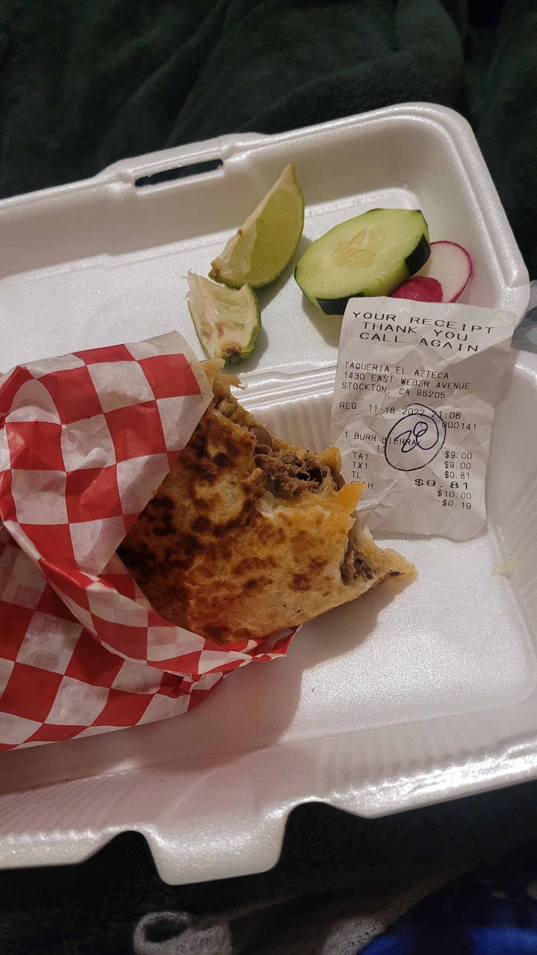 Read moreI ordered a Quesabirra, it comes with Consumé to use as dipping stock, along with grilled onions, grilled jalapeño, radishes, cucumbers, and limes. It was my first time trying this and it was delicious, very flavorful. I will definitely return and will be trying everything on the menu over time! Thank you for answering all of my questions about your food, I appreciated the help. Also the food is fresh, slight expected wait time as they will begin to make it only after...
