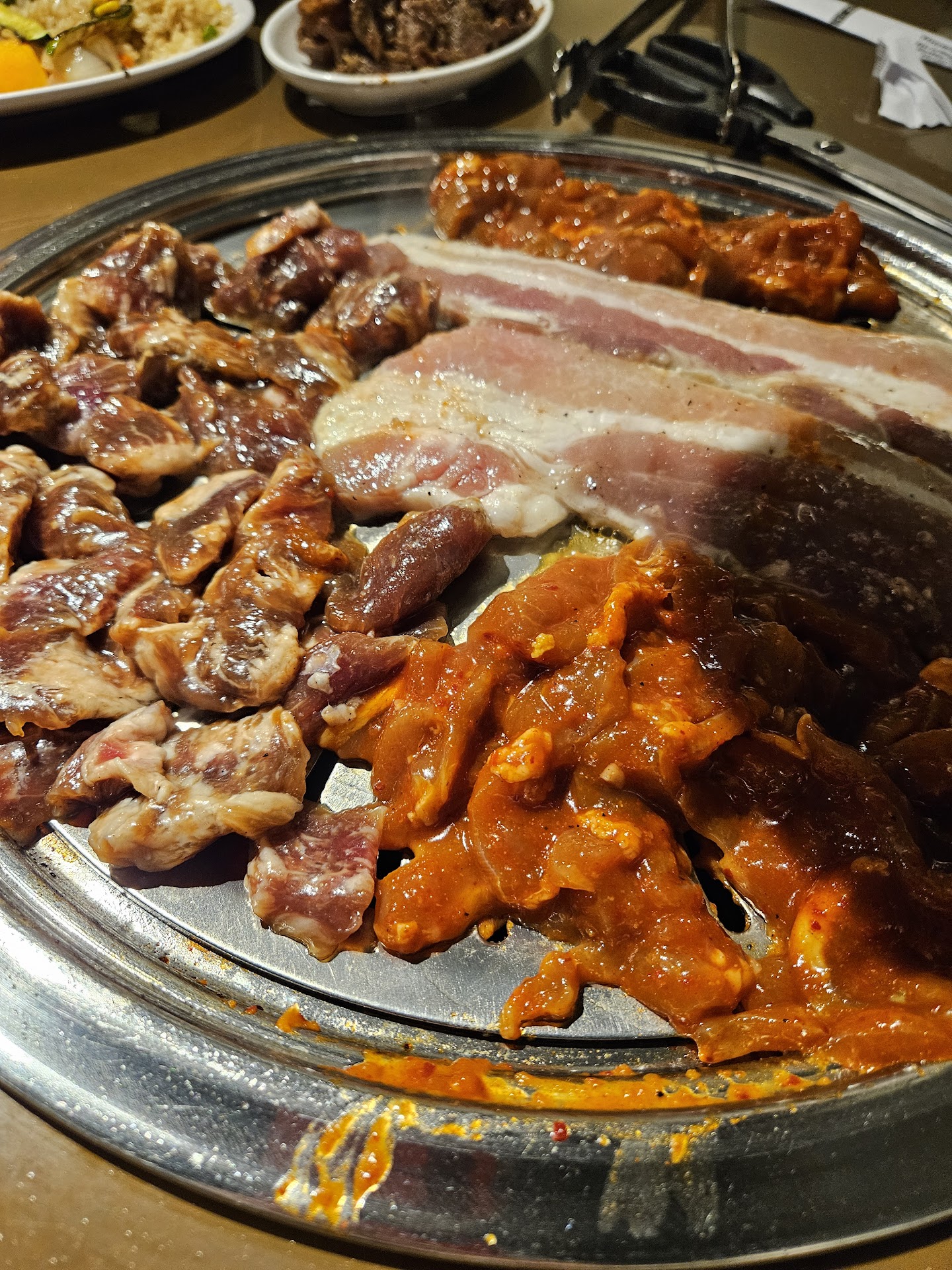 Once the food came out and we started eating we were so happy with every bite we took. The meat was perfect and fresh no matter what we ordered. Staff were very helpful with adjusting our temperature on the grill, changing the pans, and adding water to the grill underneath if needed. They do also have staff that speak Korean if that is important to you for ease of ordering. It definitely made my friend happy since she could ask questions properly.
