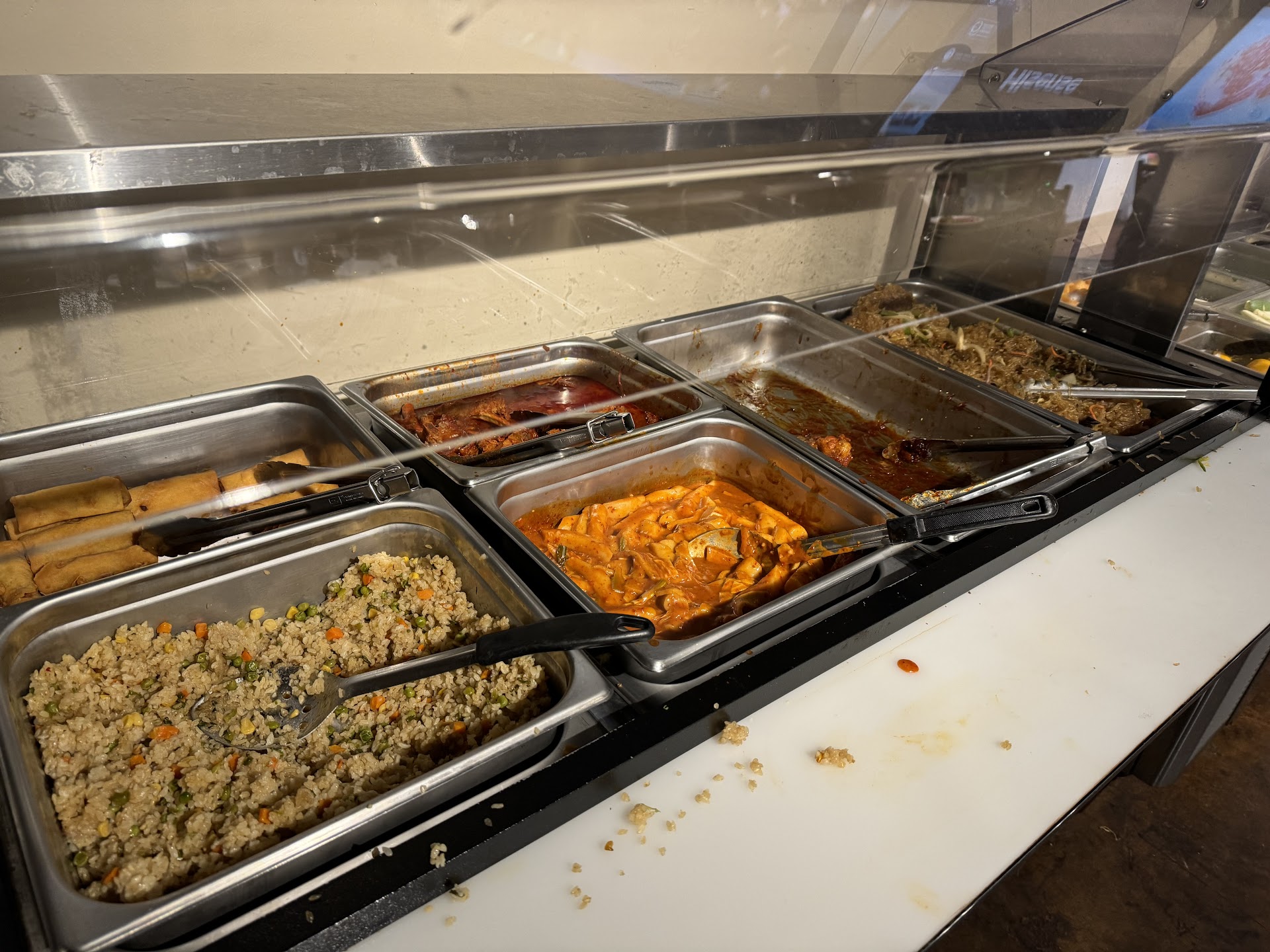 Pros: -The service was friendly. -The food such as the cheese corn, pork belly meat, and ramen was decent. -The salad bar had a variety of options. The egg rolls were good.