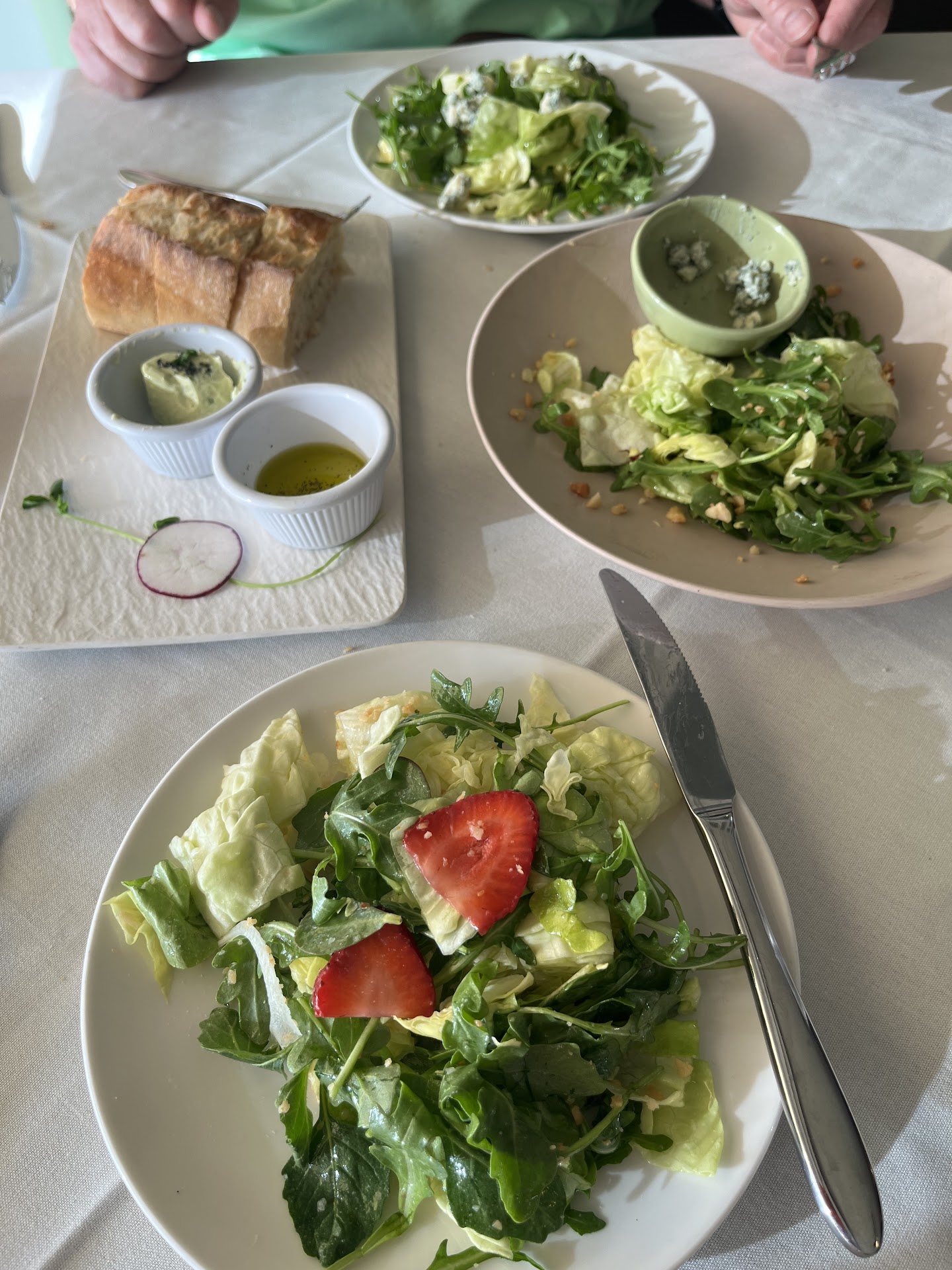 We ordered the ribeye entrée, which was excellent and prepared perfectly, and the halibut, which was tasty with a great presentation but disappointingly small for the price. The restaurant was full, and reservations were necessary, indicating its popularity. However, it’s worth noting that everything, including fresh bread and salads, comes with an additional charge. Typically, we don't eat much bread, but this time we did to avoid leaving hungry.