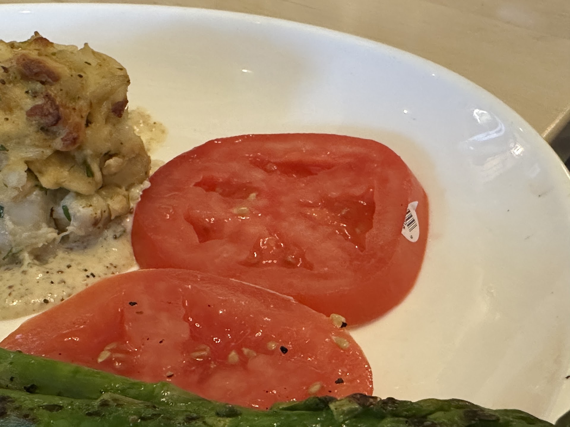 We found a tomato with the label still on 2 pieces in one of the entees, and when noting this to staff, the item was still charged at full price. If staff aren’t even taking stickers off the tomatoes in the kitchen… what other shortcuts are they taking? :/ The least you can do in that situation is refund the item.