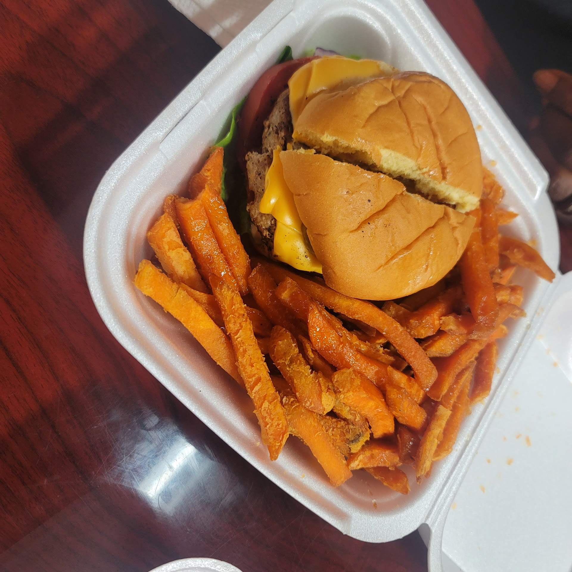 Read moreI was searching Google maps & TikTok for local eats. That have lots big enough for semi parking. Came across Del's. Owner & staff was very nice. My husband had a turkey burger & sweet potato fries. #Bustin The fries where cooked just right with a drizzle of 🍯. Very good! I had turkey wing on top of yellow rice, 🍠 yams, kale & Mac n cheese. Good size portions. I had enough left for dinner that evening. Wing was a bit dry but had a good flavor but not a jerk flavor. Mac was a little dry also. 😪 The yams were really good & kale was excellent! I'll be eating more kale if it's cooked like Del's. We also got slices of lemon cake & chocolate. Didn't eat the chocolate it wasn't right. But the lemon was amazing. It had like a lemon curd or custard on top of the icing and was super moist. I had to steal it from my husband cause I threw the chocolate away. NOW! Let me tell you about that strawberry 🍓 pink lemonade 😋 😍 That lemonade set the standard for all lemonade! Ever!