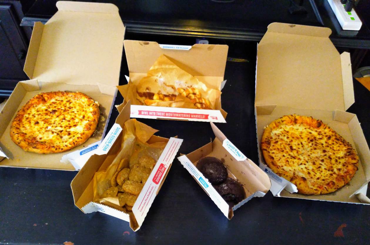 When I finally got my order it was opened, the pizza box was opened and it looked okay. The pasta was slightly burnt, but because I had waited to long and was hungry I took it and left.