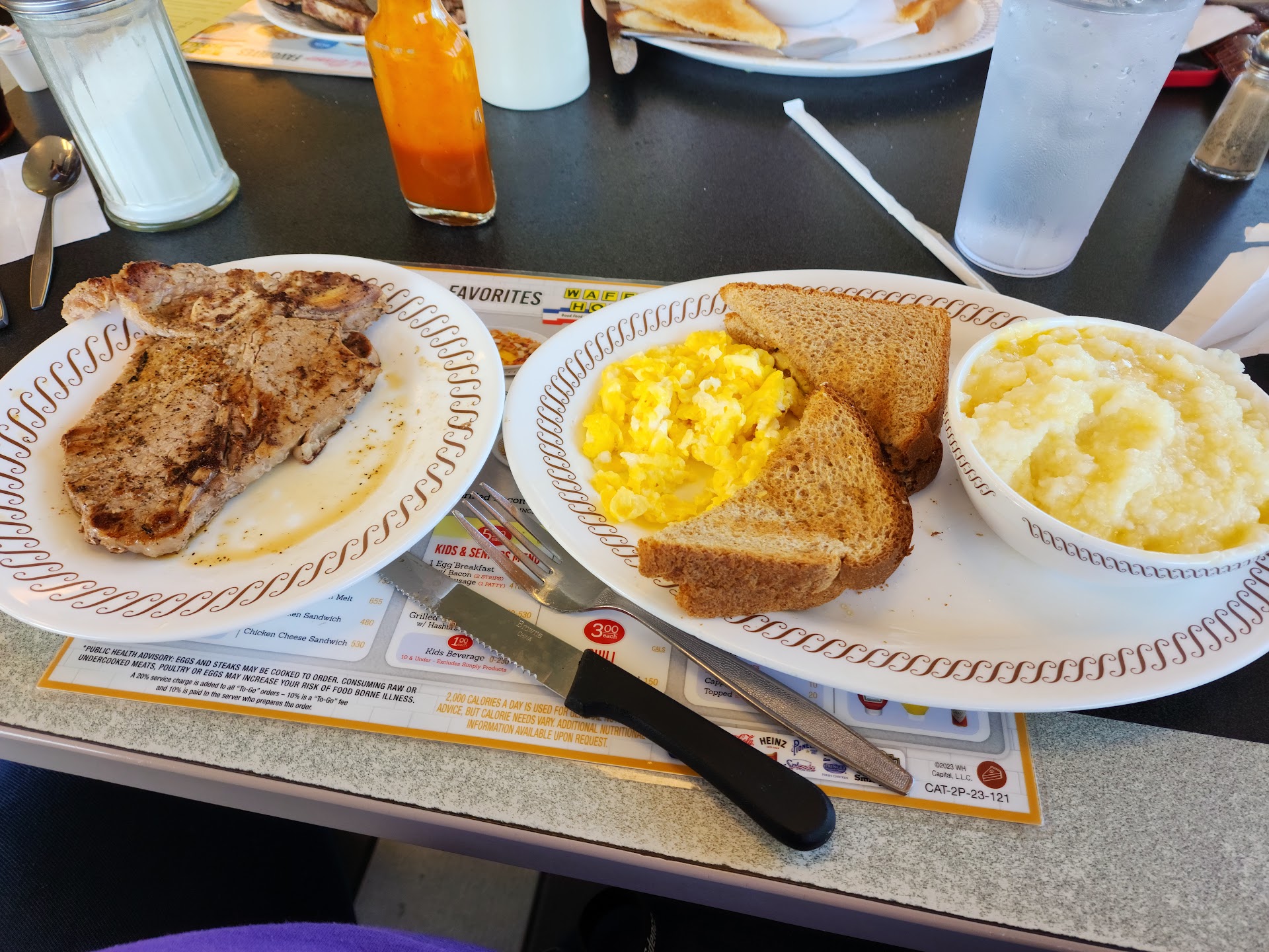 Read moreWorst service at a waffle House ever. I called in an order of steak &eggs with substitution of waffle instead of toast as well as additional order of grits and chocolate chip & nuts waffle. We should have known it was going to be an issue when she couldn't give us a total for our order over the phone. We arrive to pick up or order and the girl who turned out to be a new employee doesn't have our ticket written out so we can pay for it and the order they packed is wrong and missing a waffle. I politely tell them a regular waffle is missing and ask if I can pay for my order after standing at register a good 5 minutes or so. The new girl is still trying to write up or order that should have been written down when we called. The other employees there are looking at her struggle and shaking their heads but do nothing to help her or assist me faster as a customer. Finally she goes to another waitress for help who was watching her struggle earlier and still gets order wrong and has cool make a pecan waffle. I kindly advise I am just waiting on a regular waffle which o had sustituted instead of toast. That's when the other waitress says sorry we don't substitute toast for waffle and I advise her I was not told that over the phone. Had I been told that it would not have been an issue but I was not informed of that and was told that I could by waitress over phone. She did not want to honor what I was told and made no effort to please me as a customer and a this time I've been standing at register 15 minutes now still waiting to be rung up and still waiting. For them to get my order correct. She then says we have to add your pecan waffle separately to order. Once again I ordered a regular waffle substituted for toast not a pecan waffle. The cook comes to register to see what the issue is and tells me the same that they can not substitute the order. At this point and 20 minute wait, I kindly smile and walk out of Waffle house. They need to work on their customer service internally and externally when they see a new person struggling and a...