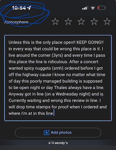 Read moreWhenever I go to this Wendy's there is a significant delay in service, to the point of leaving with my food! I ordered a chili with pub fries and a frosty. The delay from the drive-thru to the pick-up window was 25 minutes, when I was first handed my food. The paper bag was wet and dripping hot chili which burned my leg. I blew my horn as they had closed the window. When the window server came to the window, she had an attitude. I told her that the bag is broken and that the chili burned my leg. She did not apologize or anything!! I also told her that I did not get the frosty. She gave me the frost and put the broken dripping bag in a plastic bag. When I received that from her, the bag with the chili was turned sideways and was spilling inside the same bag. She again closed the window. I blew my horn again for tgem to take the food back. A man came to the window, and I told him that the chili was turned sideways and making a mess in the bag. I also asked for my receipt which I was not given. Still no apology for the sloppy mess and bad service that I was given. Needless to say, my car has a cream fabric interior, and I did not want the chili to drip and stain my car seat. I was finally given my food in a dry bag and the chili securely covered, by the man who apparently took care of the problem. He also found my receipt and handed it to me. I like to have a receipt especially when I pay with my bank/credit cards, so I can see how much I was charged. This Wendy's has a couple people working there who are very lacking in respect and good customer service, who...