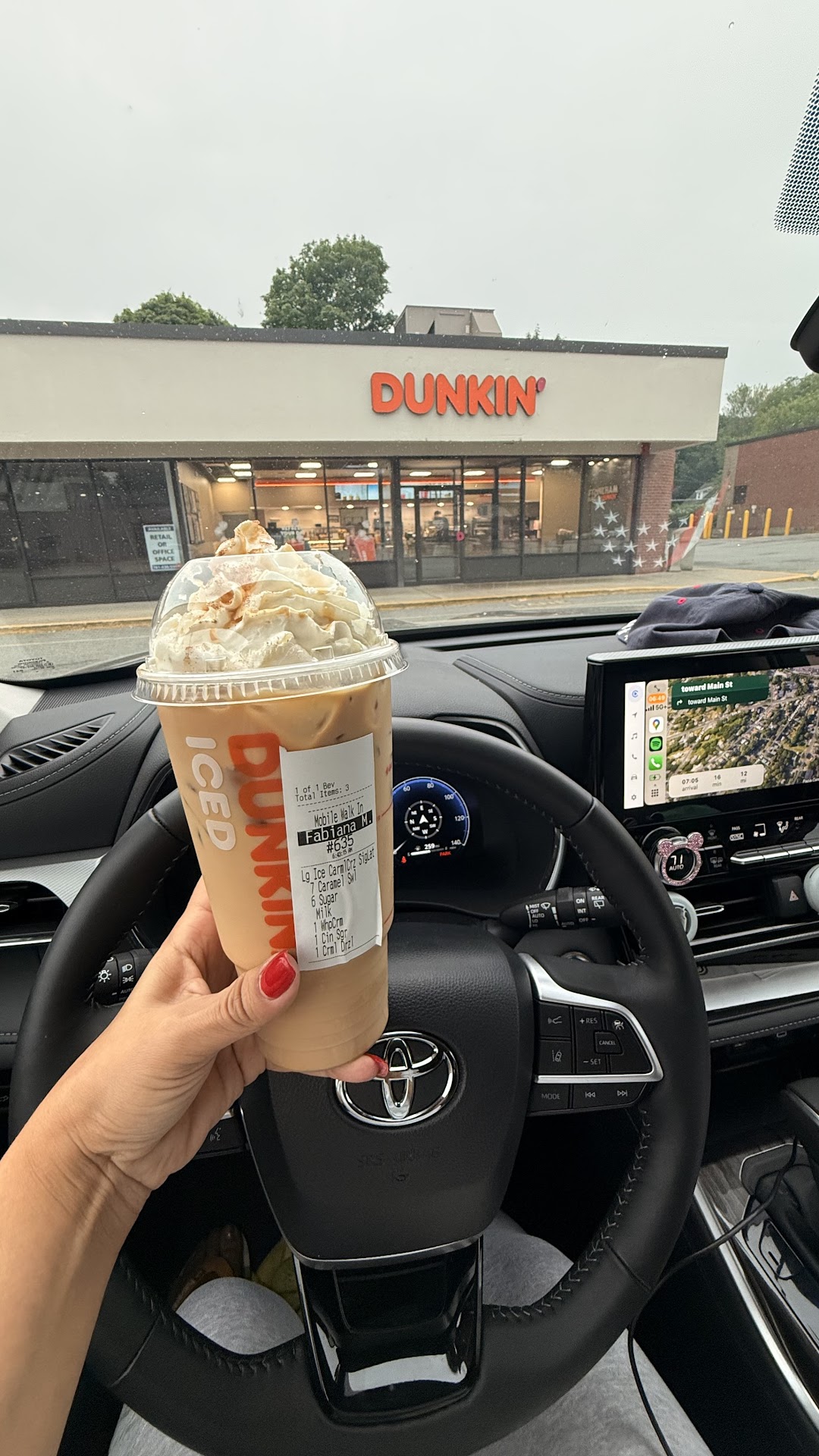 Used the DD app to order. Asked for extra cream and looks likes I got less than a large uses...iced cappuccino was made into blended coffee then made a second time with wrong flavor, then you argue about not getting it wrong!...frozen coffee not made with correct shots of flavor then remade with less cream...