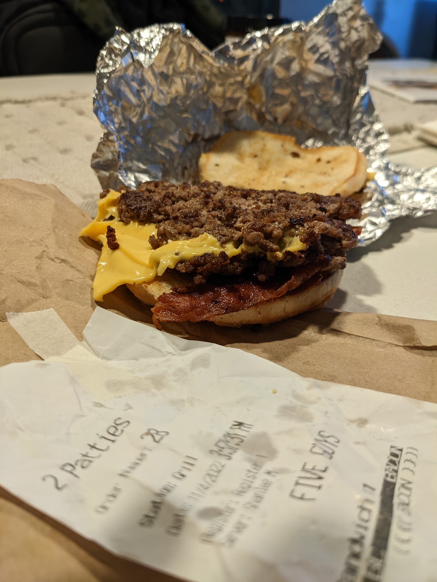 Read moreI ordered a cheeseburger and veggie sandwich with cheese for pick up at 5:45 pm. We get there at 5:45 pm, wait for 20 minutes because our food isn’t ready, then we get our food. The veggie sandwich doesn’t have cheese on it, so we ask for cheese. 10 minutes later we get the veggie sandwich and there’s two burger patties on them. I ask why there’s hamburger on my veggie sandwich and if they can remake it and the woman I’m speaking with doesn’t understand the problem and has to call the manager over. I tell the manager the problem and he goes to remake my sandwich. Another 10 minutes later, I get my veggie sandwich and it’s cold and the mushrooms and onions are not fully cooked. I usually like Five Guys but this experience alone is enough to not make me come back or recommend it to anyone. I’m very disappointed in this experience...