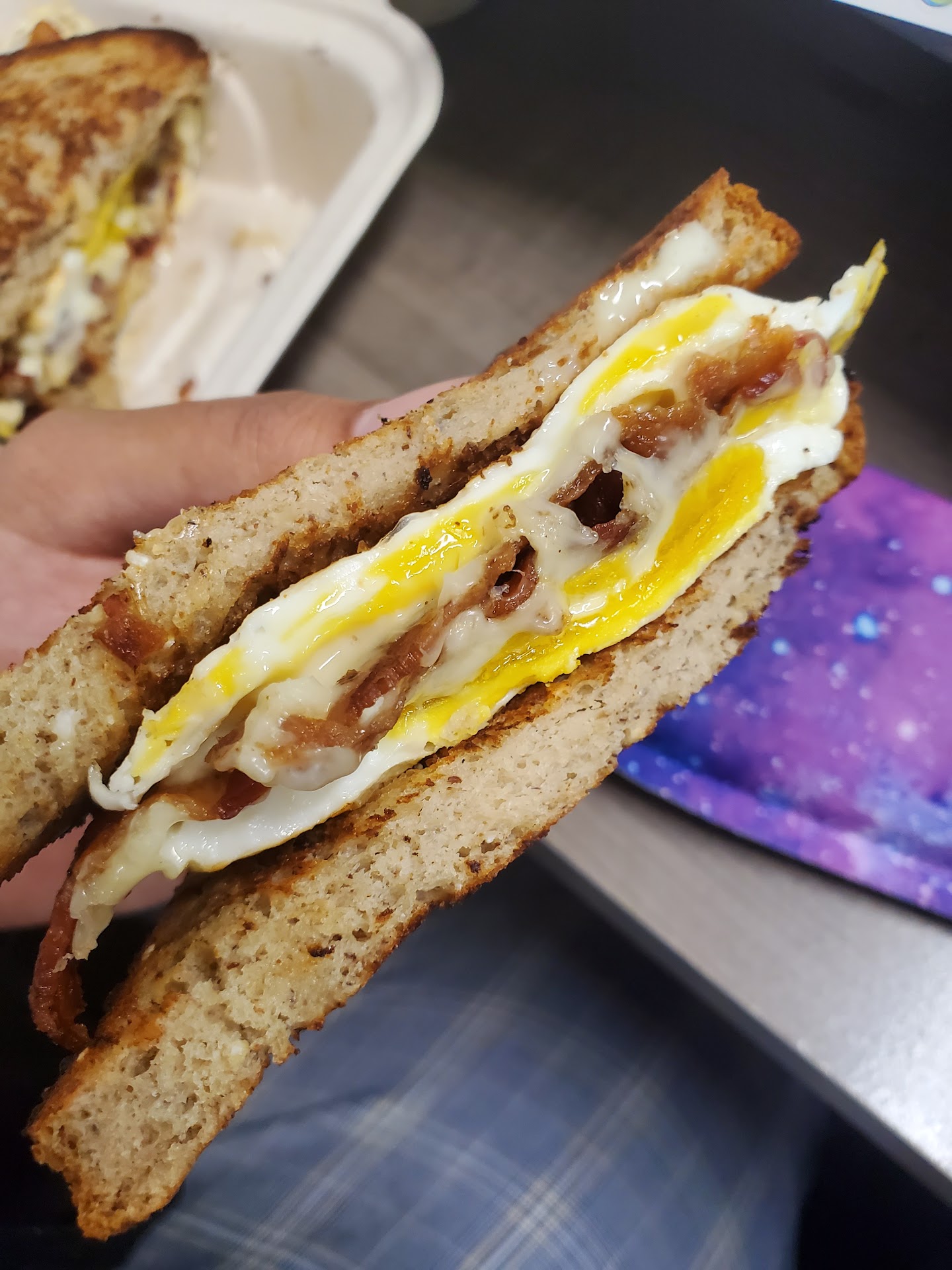 The sandwich itself was absolutely delicous. The eggs were cooked perfectly, the bacon crispy and the chesse melted beautifully. The bread itself was almost like regular bread. It was toasted perfectly with a rich buttery taste to it. I also love how the sandwiches come with two eggs. Not many places sell it this was.