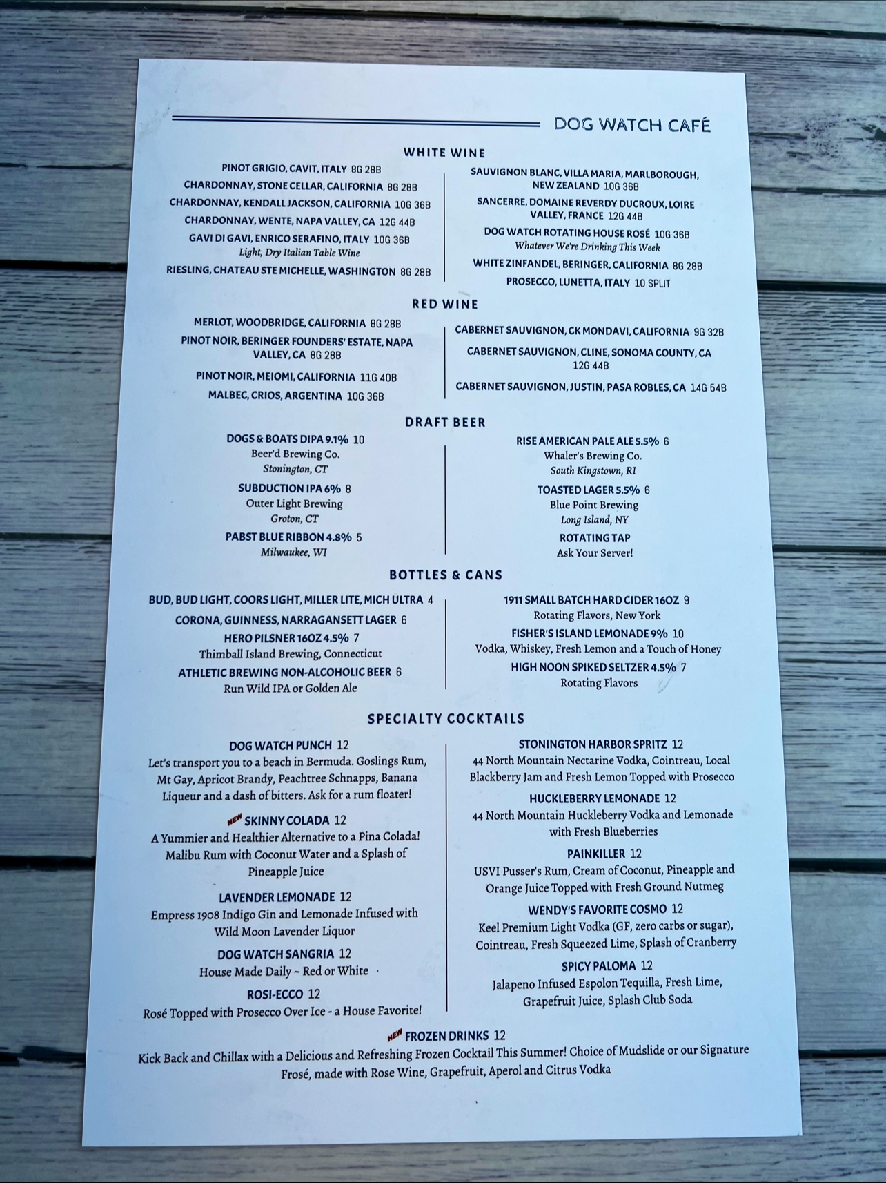 Read moreMy boyfriend and I go to Dog Watch in Stonington quite frequently. We love the food and atmosphere. Normally every time we go we have great service and food comes out very quickly. Iâm sad to report that that was not the case this time. From start to finish it seemed like we were a burden to the server taking care of us, a young blonde, whose name I canât even tell you because she never told us. She seemed like she was in a rush the entire time and couldnât give us the time of day. Never offered us bread or asked if we needed more drinks. At one point, we had to shout our order as she walked by to another table when we wanted another drink. We got the mussels to start out with along with some other apps, food as always so very yummy! The sad part was that NO ONE at any point cleared our table or took anything away. We had the shells from our mussels on our table our entire meal! When she brought another beer to us she didnât take the old used glass away from the previous drink! I got the Ribeye special and asked for it to be rare; came out more medium well which the server wouldnât have known because she did not check on us ONCE. Iâm not someone to send back food so I ate it. it seemed like when she was done taking our order she completely ignored/forgot about us. They did give us a key lime pie for bday dessert which was nice but idk if it made up for the lack of service and attentiveness that we received. Our bill was 257, for 4 people thatâs almost 65 dollars a person so itâs not like we werenât spending money, no reason for us to be treated like people just taking up a table? When the server dropped the check she made a comment that another reservation was coming in soon, as if we needed to rush to pay to give up the table! Very disappointed because of how much I really normally enjoy...