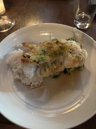 starting with the service, our server was a bit awkward. she was probably new (she didnāt know the menu), so weāre not annoyed about it, but it just wasnāt as smooth to order our food as it couldāve been. also, our wine took 20 mins to come, and our food took over 40, and thatās after we ordered. we had to wait a good amount just to get our water and put in our orders. the capacity for the place is like 80 including staff, so it wasnāt packed at all. we were kind of in a corner though so maybe she just couldnāt see us so we were easy to forget. the food was soooo mid. we got maple spicy something wings and they really just tasted like some hot sauce, no flavor to point out. and the chicken was a little over cooked. good amount of wings tho- you get 6 big ones. they didnāt have the initial thing i ordered and the waitress had to come back and tell me 5 minutes after my boyfriend had already ordered, and his food (the brisket special) came out cold so it mustāve been ready before she put my new order in and she didnāt tell them to wait to start his till they got my new ticket. i ordered the miso sweet soy cod with jasmine rice and cucumber salad. this oneās probably on me since i donāt love white fish, but i only had one bite because it was tasteless. barely any sauce and i honestly just wasnāt a fan of whatever was on top of the fish. my boyfriend liked the brisket enough besides it being cold and hard, and he thought the sides were fine (zucchini, potato salad, cornbread/toast). the atmosphere of this place is good, maybe a little loud (no big deal for us), but a beautiful venue overall. if youāre on vacay here and youāre deciding between places to go too, just know engine room is good for vibes but not if you want quality food (for the price) and service.