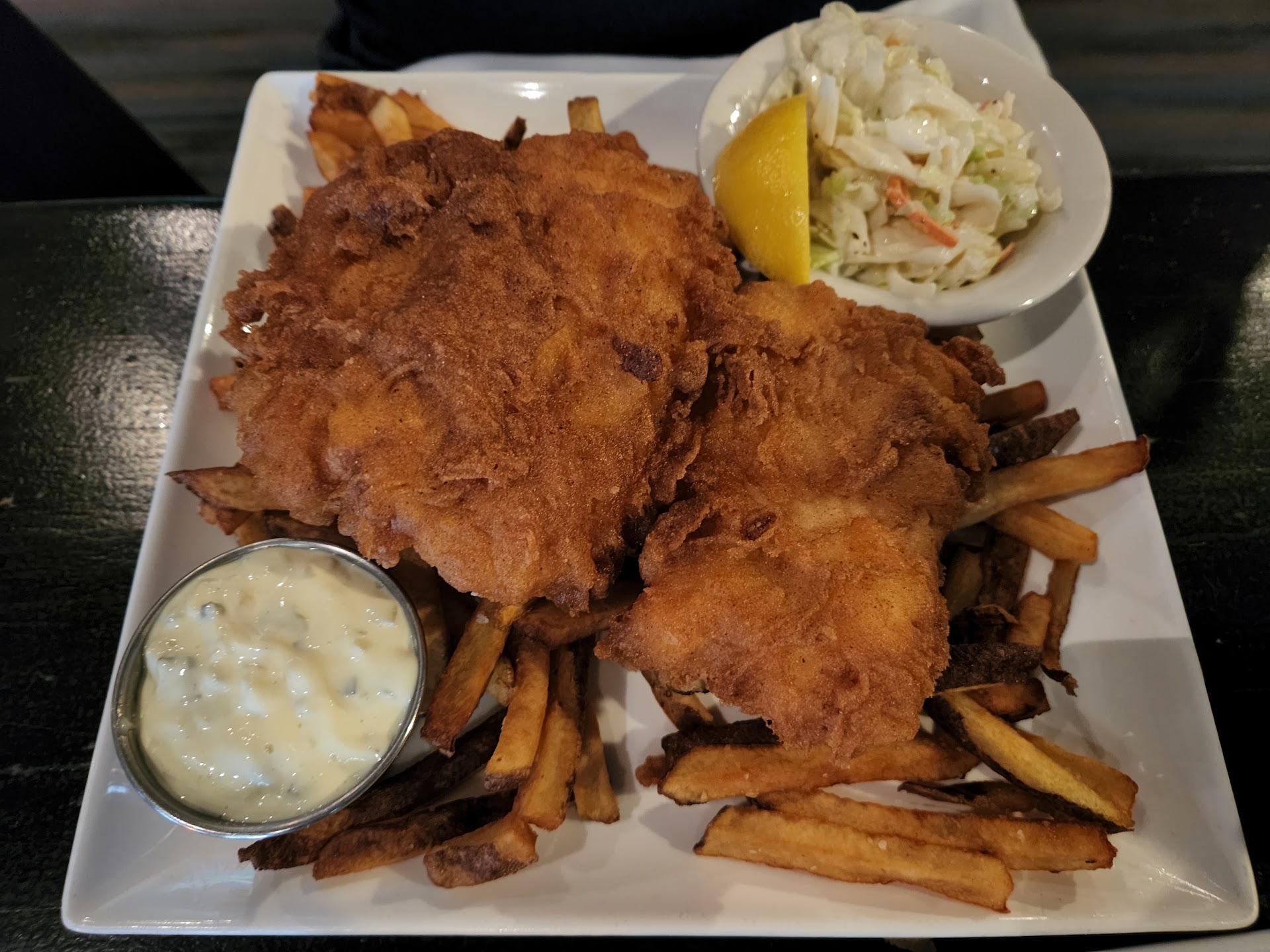 While spending some time in the area we decided to check out The Olde Mystic Village. We had been there before during the day so we decided to check it out at night during Christmas season. While doing so we decided to dine and checked out “Go Fish” We happened to be there on $5 martini night so the Mrs was pleased. After looking at a menu to decide if we wanted to stay we did and were promptly seated. The Mrs ordered her drink and said it was ok, not nearly the best she had ever had. We both ordered a salad which was fine and we both ordered the fish and chips. Our waitress also asked us if we would like some bread. The Mrs said sure and I asked if they had any gluten free bread. She replied No but if I would like she could toast up a gluten free roll that they use for sandwiches. I said sure and she brought it promptly. I have to say it was delicious and a nice gesture on her part. Likewise the Mrs. enjoyed her load of bread too. Our meals came printout and we’re piping hot. So much that I had to eat the delicious fries for a while before I could have some of the fish. Once we were able to eat it, it was delicious. The coating was crispy and tasty. The fish was tasty and light. We both enjoyed our dinners. We passed on dessert as we were full from our meals. When the check arrived we noticed that we were charged full price for the martini. The Mrs brought it to our waitresses attention and she promptly made the adjustment. Overall we enjoyed our experience and meal at “Go Fish” and would...