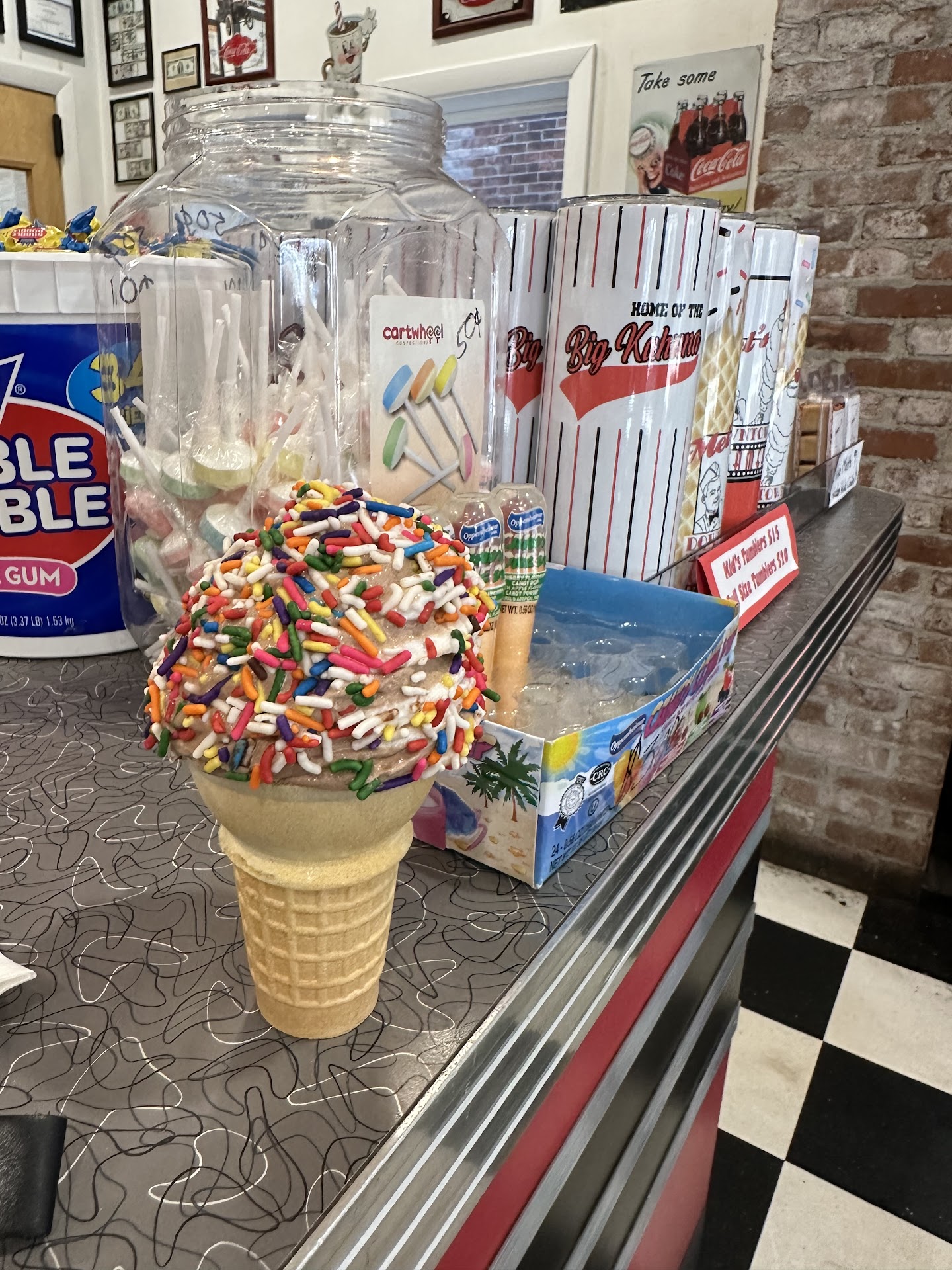 Ā Ā Ā Read moreA 50's throwback ice cream parlor. We have been going for a few years and the last time we went I was very disappointed. I ordered the chocolate peanut butter cup and there was no pb to be found I tried to dig around to search for it but had lots of trouble cause the spoon they give u is so cheap it kept bending with the hard ice cream. The floor was so dirty our shoes kept sticking to it. The three girls behind the counter were not very personable and extremely slow. Not sure what happened but it's definitely not the same. Threw most of my ice cream away and left to go...