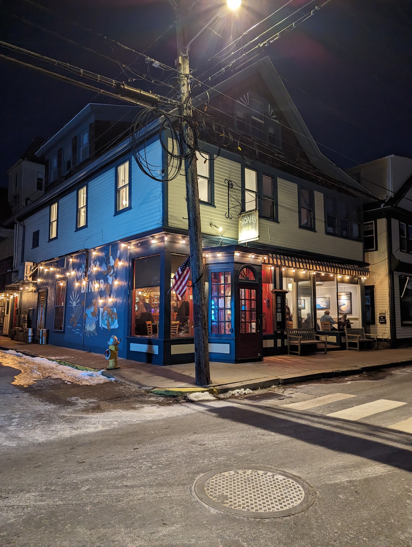 Read moreWhat a charming little place to sit and enjoy freshly made food. We were out yesterday in Stonington, CT. a a mini snow squall kicked up with a brisk cold wind which made our trip to Stonington even better. Driving on Water St. we saw Noah's on the corner flying the American flag at lunchtime. we stopped in . We were greeted by Meghan and seated in a cozy dining area with a few booths and tables spaced nicely. Old building so all the old floors and metal ceiling sheets and a bump out window table caught my eye. This place is a great place to warm the bones and sit and enjoy the atmosphere, there was party of 4 sitting and just enjoying each others company and the comfortable and cozy feel , nobody was rushing them out. We were seated and first thing you notice are the great photographs on the walls. A local artist John Papp, beautiful photography and neatly matted and framed. Colorful exotic birds and some local pictures all for sale. Onto the food, we were there for lunch, breakfast is served until 11:30 then they switch over to lunch. My wife ordered a Awesome Sauce Burger that comes with lettuce, tomato, cheese and smoked applewood bacon, I ordered a Boro Bowl, comes with rice and quinoa.You get 2 choices of sauces along with 4 standards, spicy sesame and ranch dressings I chose tomato, edamame, raw red onion and raw spinach. I added a protein Bulgogi steak. EXCELLENT bowl !!!!! My wife said her burger was great. Meghan provided excellent service with a smile. This small restaurant was a great stop for us, we will definitely be back again. Their menus offer something for everyone, breakfast, lunch or dinner you can't go wrong Top the experience off with beautiful...