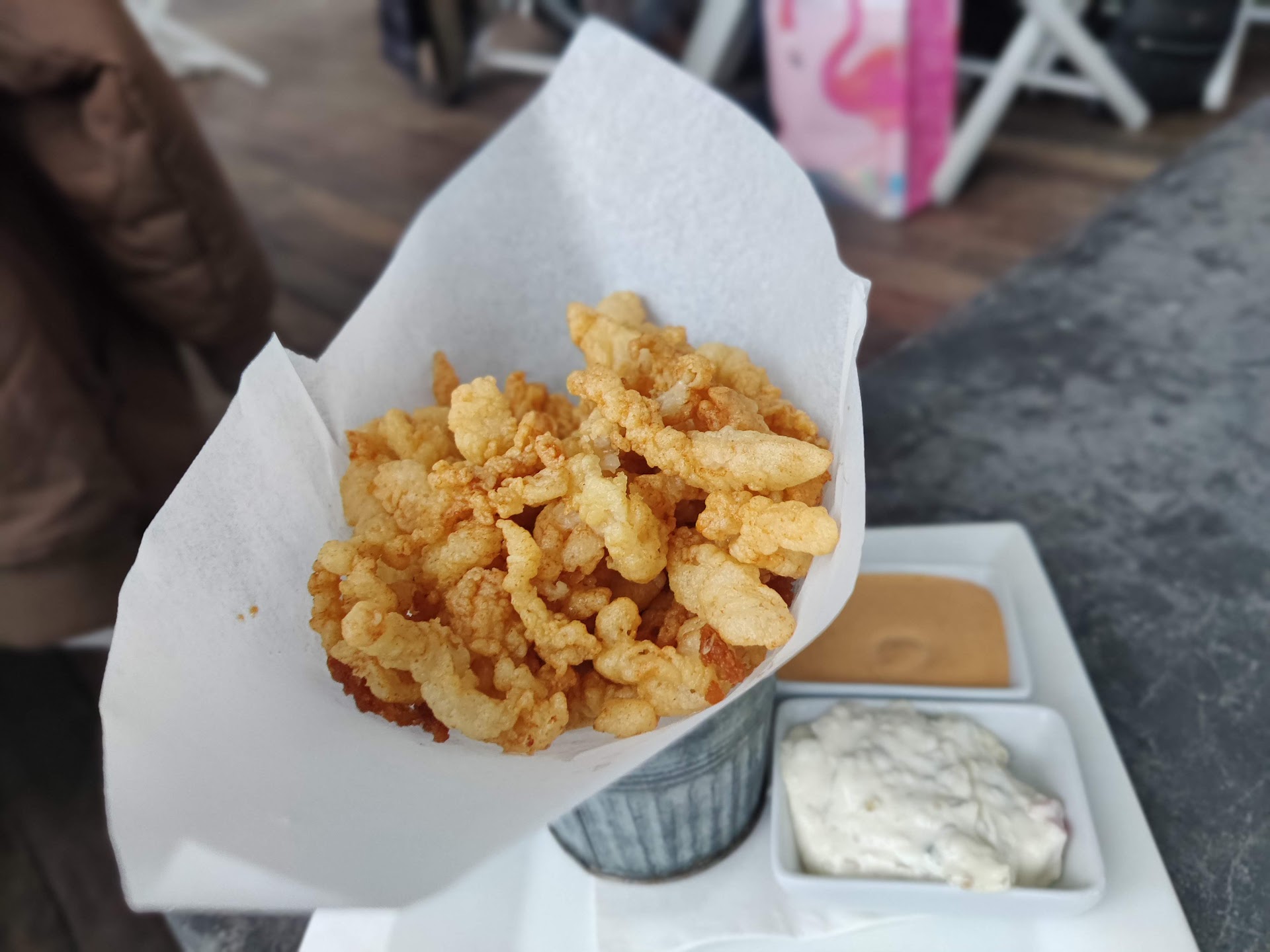 Read moreLet's start by reviewing the space. It's really nice and pretty, right by the water, it's a big restaurant with two levels, an outside bar and lots of tables. We arrived as soon as they opened basically and the waitress was really kind. The menu is ok, they don't have anything mind-blowing that you won't find anywhere else but the options are diverse and many dishes caught my attention. I was really happy to try their caipirinha, as a Brazilian myself, I can say their drink is authentic. I ordered a ceviche (sorry, did not take a pic) and oysters, my husband ordered crab cakes. The oysters were really fresh, although I was disappointed when I noticed they had different types in a little separate menu and the waitress did not confirm with us before placing the order, so they sent a random selection. The ceviche was inedible unfortunately, I believe they left the fish in the citrus marinade for too long and it completely overcooked, it was rubbery, bitter, fishy, not good at all, and it lacked acidity, which is imperative in any ceviche. My husband told me his crab cakes were good, I did not try so I can't really review them. The tuna tartare (in the pic) was really good, the texture contrast between the fish, the seaweed salad, the wasabi caviar and the the fried tortilla worked really well, that was probably the best dish of my lunch. Now apart from the food, the reason why I'm giving the place 2 stars (if it were only for the food I'd give it 3) is because the waitress asked us to leave because they have a 2 hour limit, even though we were constantly ordering something here and there. I totally understand that there are people waiting for a table (we did not know this place was that popular) but if they have a 2-hour policy, it would be nice to know that in advance, because we thought that as a restaurant/bar by the waterfront we could enjoy a nice summer afternoon having food and drinks. It sounded like this rule doesn't really exist for all costumers or else they would have it written somewhere or at least informed us in advance. So we left and went to another restaurant in which we stayed for longer and did not have to worry about how long we were there. Unfortunately not the best experience I've had in the New London /...