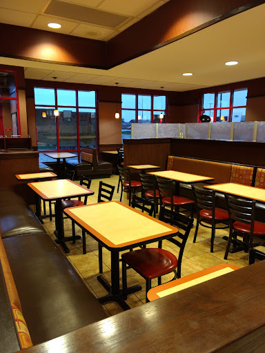 Place closes at 10. Pulled in a little before 9. Open sign is off, all the tables are on their sides. We ordered, but they took all the heads off the soda pump and they didn't tell us until we went to get soda. We couldn't sit anywhere besides these 2 tables that weren't on their sides, but the booths were disgusting and I didn't even want to sit down. They were sticky, covered in food, etc. All their trash cans were gone and couldn't figure out where to throw anything away.