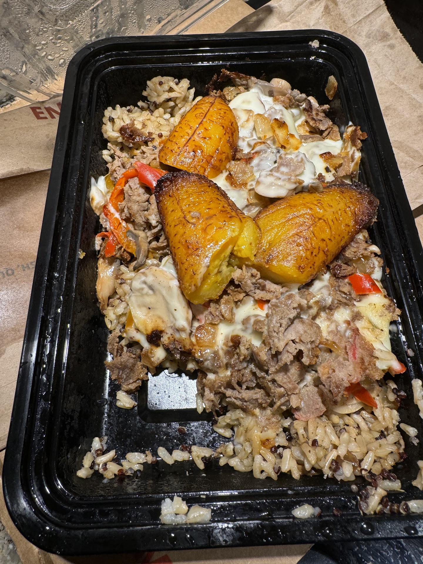 The food was delicious. I ordered calzone.-- which I had yesterday. It was a chicken calzone with delicious crust and tasty chicken. The portion, though I had ordered a small, was great, and filled to the brim with chicken. I feel that a few people could have shared that. Also, the salad with grilled chicken was filled with varied vegetables was excellent. Window service wss friendly and helpful.