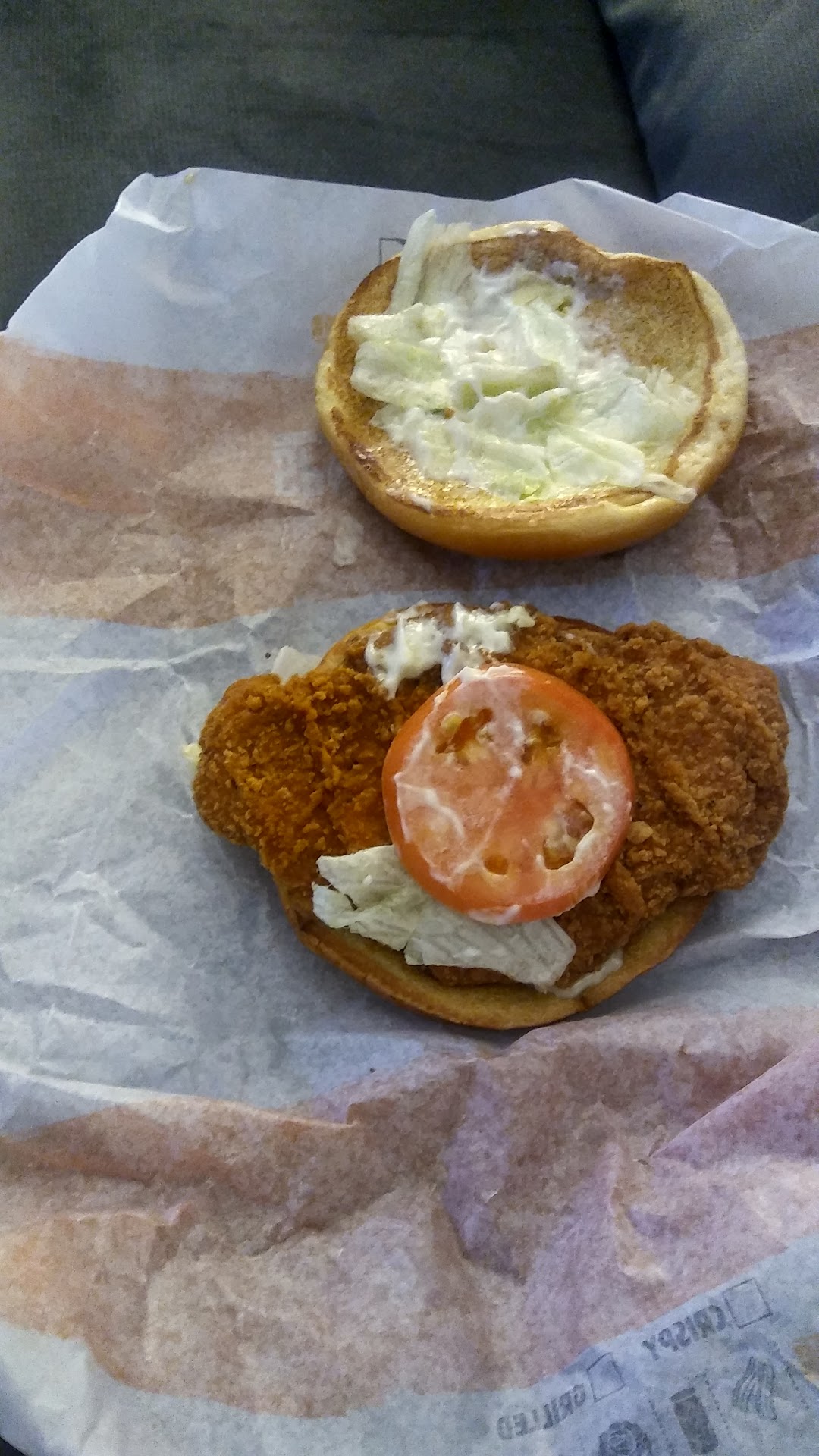Read moreTerrible quality. Was at the drive thru last week and ordered $30 of food. Not only was one sandwich missing, the others looked like they were slopped together and left to sit for hours. Figured it was just a bad/long night for the crew and gave them another chance today. Wanted to order the sourdough chicken king that is pictured on the website only to find out they don't carry them, or any sour dough sandwiches for that matter. Ordered a regular chicken sandwich instead and upon opening it saw a piece of chicken put on it that looked pretty good, half a slice of tomato, three pieces, LITERALLY THREE PIECES of lettuce, a piece of bacon fat and the mayonnaise squirted in one spot all the way to the side. I don't know if your staff are just oblivious and ignorant or if quality doesn't matter to this location....