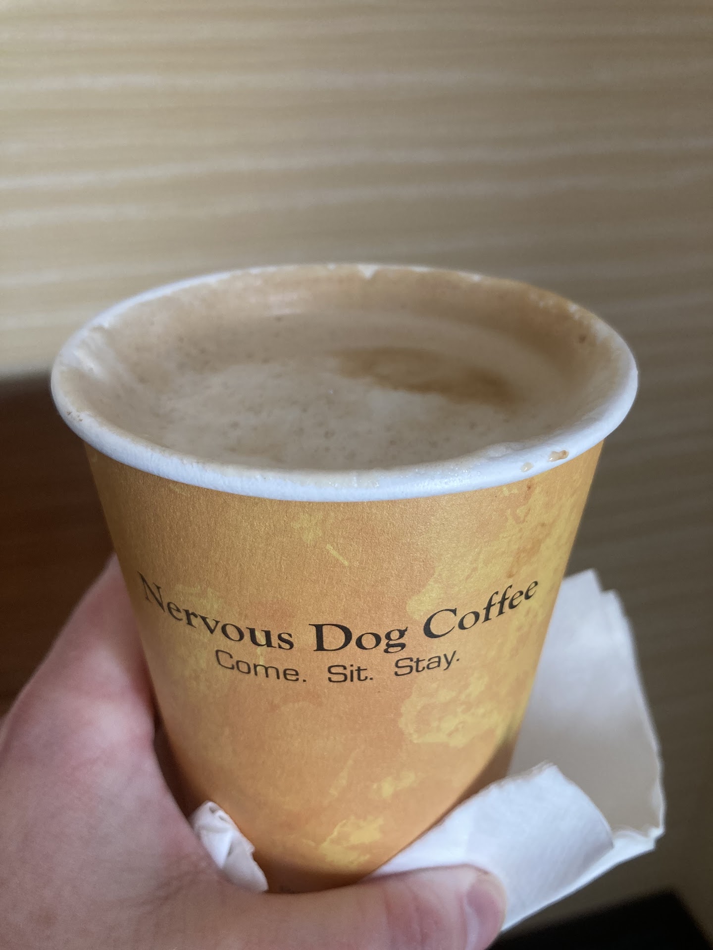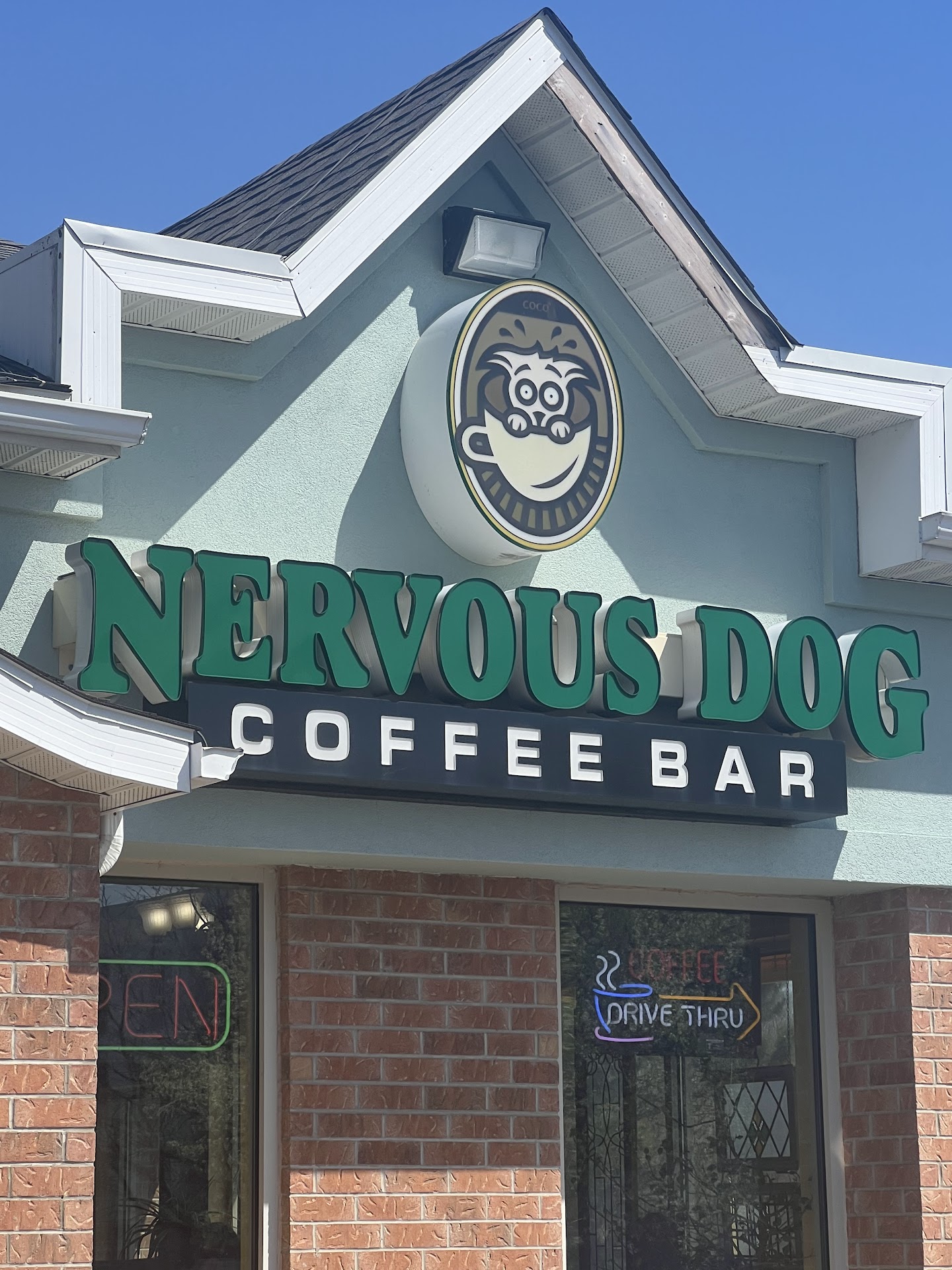 What a gem of an independent coffee shop! Take a break from your standard Starbucks & stop in to Nervous Dog for your favorite coffee drink or any number of specialty beverages, all branded with cute (if not particularly descriptive) names. They serve pastries & breakfast sandwiches all day, plus plenty of other sandwiches, all of which can be done as salads instead. The staff is friendly, accommodating, & happy to answer your questions or give you a recommendation if you're not sure where to begin. Too cold to leave your car? Nervous Dog also has a drive-thru window.
