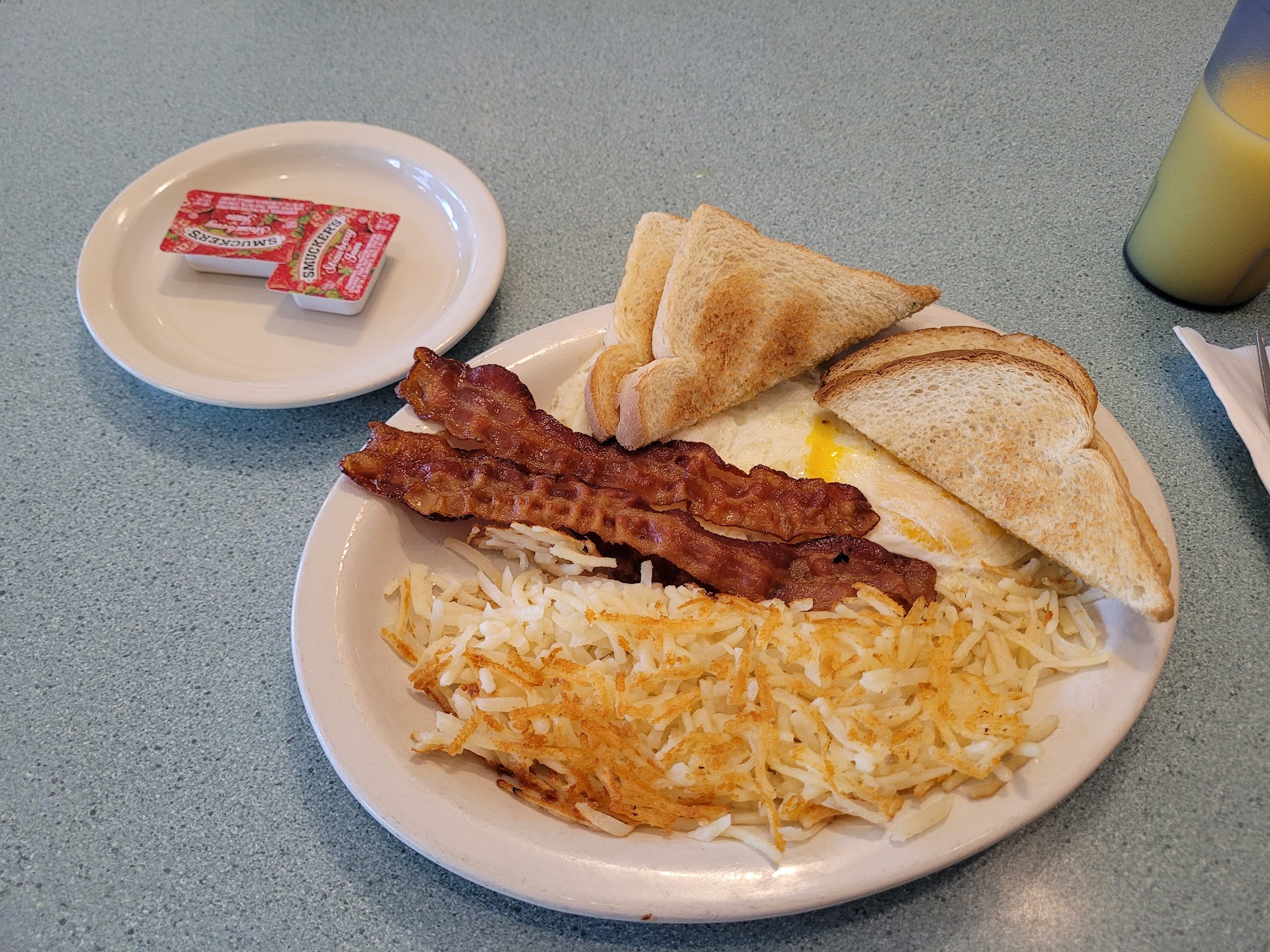 Clean, neat building and simple front face come off a but plain but the restaurant and food is anything but. Being a long local restaurant, I've driven by it all the time but rarely stopped to eat since I live a town or two over. But I've gone twice recently and both times have been such a great experience I felt I needed to share about it. The servers and staff are friendly and we even got a wonderful chat from one about her dog. đ„° It wasn't completely packed either time we went, but if it had been I think the layout was set up in a great way for coziness not crowding. For those who might want to sit alone at a counter they have a section right at the front for individual seating with a TV if you like. The atmosphere is basically old fashioned local restaurant, with a moderate (a.k.a. not 5 pages) menu of quality, well priced comfort food with daily specials for variety. It's the kind if place you go to sit and talk with the other person in your booth and catch up on life over coffee or tea and a soothing meal. It's not surrounded by TVs with a sports game or anything, but has a more calm atmosphere. And don't think for once that because this restaurant has been around a while that it's "old" because every single booth, carpet, table, light etc is in good shape and clean and I didn't see a single cobweb anywhere! One of the cleanest places we have eaten at in a long time. Food? Tastes just like my mom used to make, which is a great compliment. So far I've tried the breakfast sandwich with hash browns and the beer-cheese soup with garlic bread. Hubby had an omelet and also steak and eggs. All have been great! Can't wait to try it for dinner sometime because breakfast has been awesome. Last visit was $30 for 2 of us and that included the steak and eggs and...